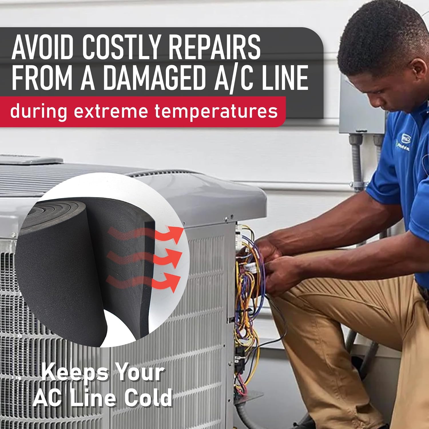 25% THICKER COMPARED TO ALL BIG BOX: This isn’t your average pipe wrap insulation. It stretches up to 7x without snapping and easily contours to extreme bends. It’s the ultimate ac hose insulation tape for tackling tough-to-reach spots on your outdoor A/C lines. If flexibility and durability are what you need, this foam seal tape and rubberized tape delivers like no other!