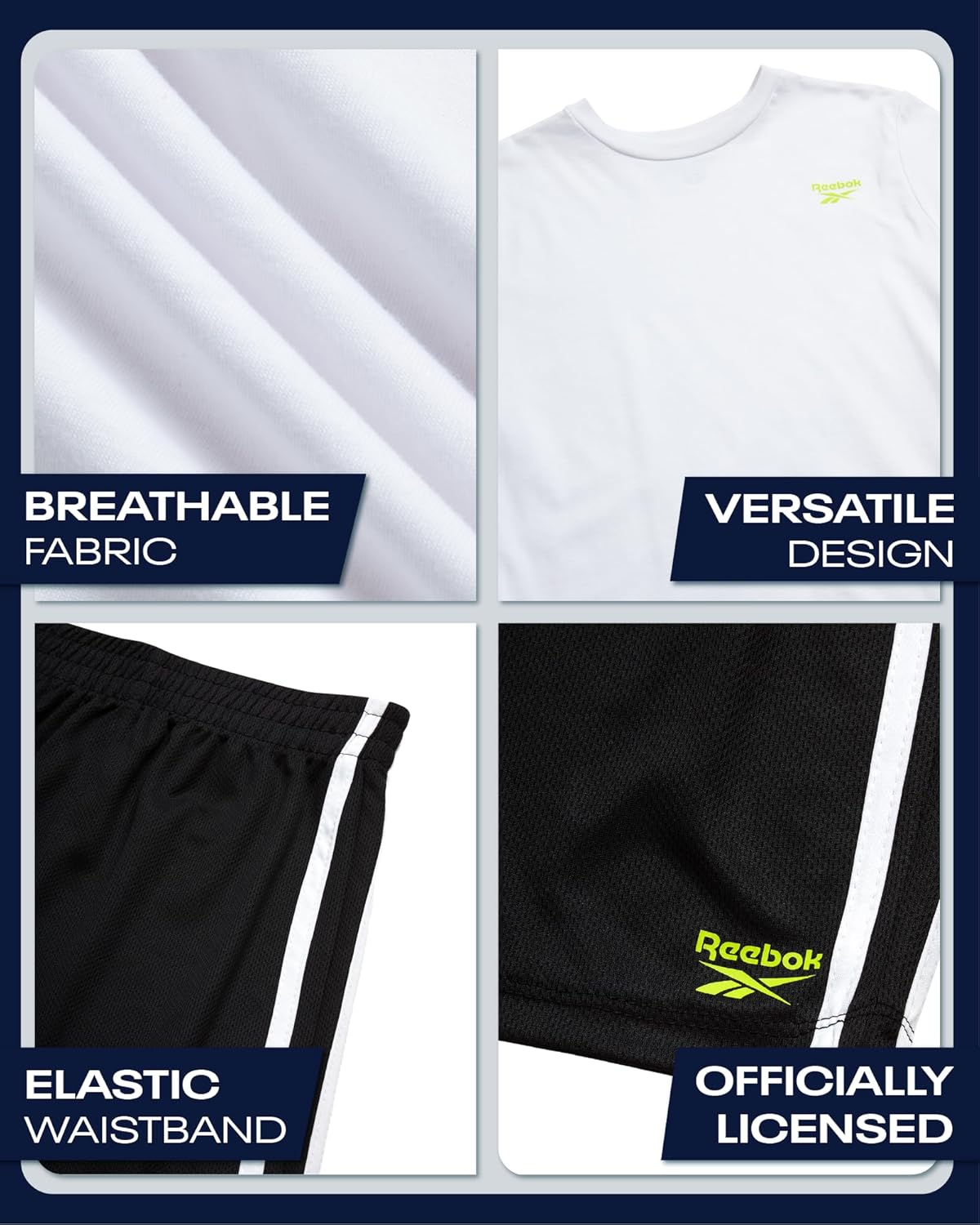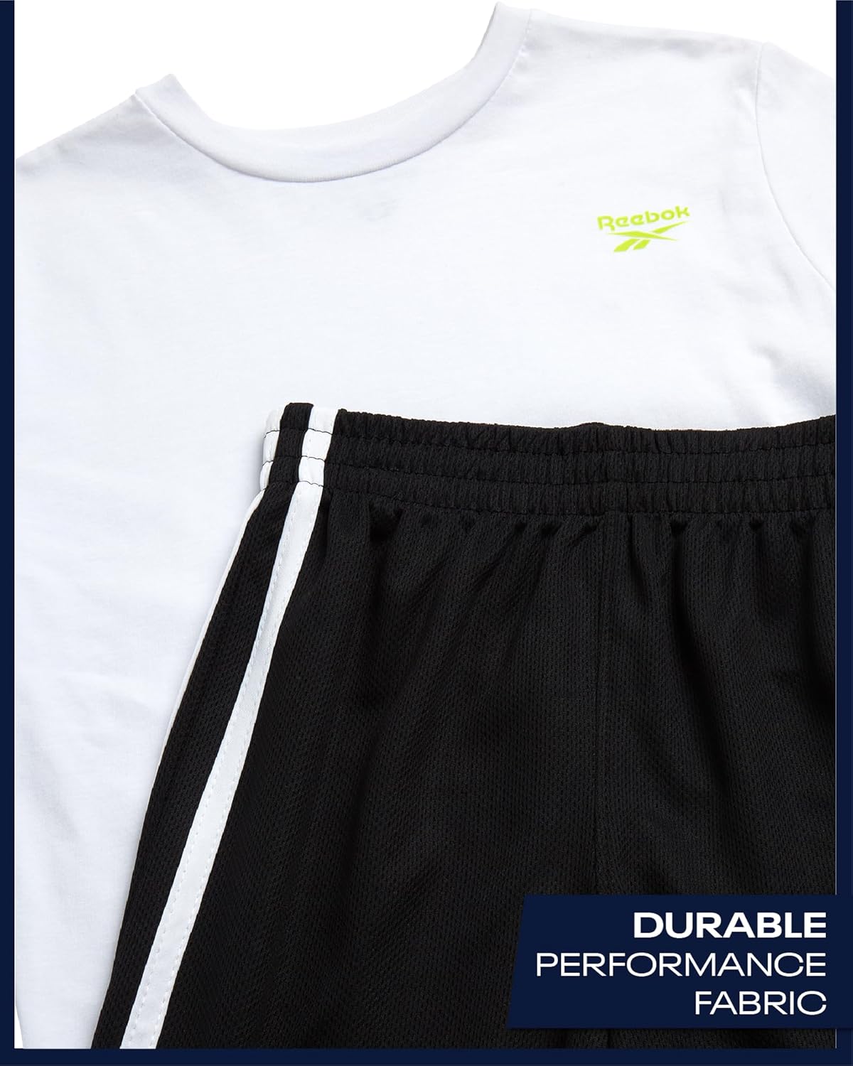 Reebok Boys Athletic Shorts Set – 2 Piece Summer Clothes Outfit with Graphic Tee and Boys Basketball Shorts for Active Kids