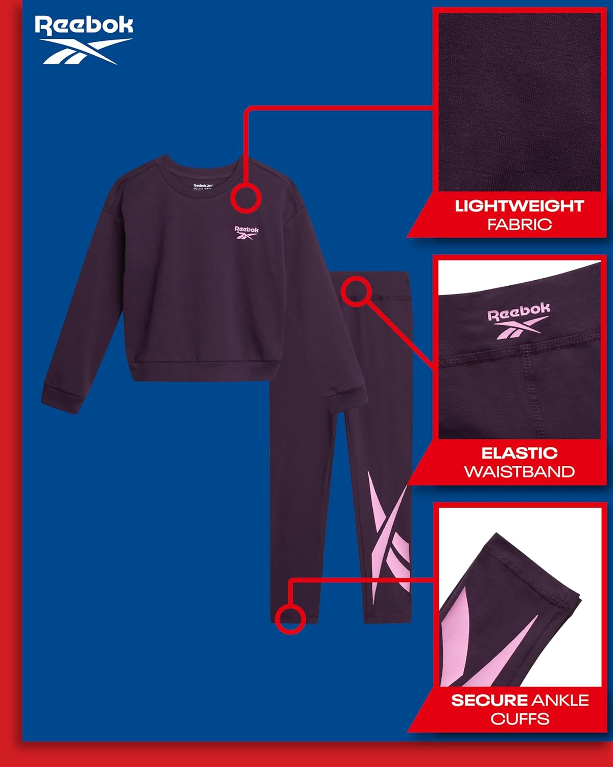 9 reviews for Reebok Girls Pants Set – 2 Piece Lightweight Long Sleeve Shirt and Girls Leggings Outfit – Breathable Athletic Outfits