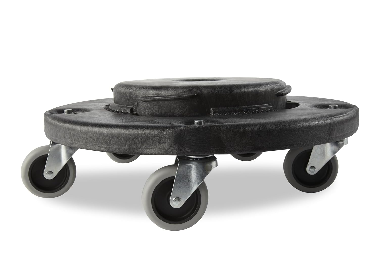 The Rubbermaid Commercial BRUTE® Dolly smoothly and efficiently transports 20 gallon, 32 gallon, 44 gallon, and 55 gallon BRUTE® trash containers easily and quickly. Provides easy mobility and maneuverability when collecting and transporting heavy loads. The dolly supports up to 250 lbs and features an innovative twist-lock design to keep containers secure.