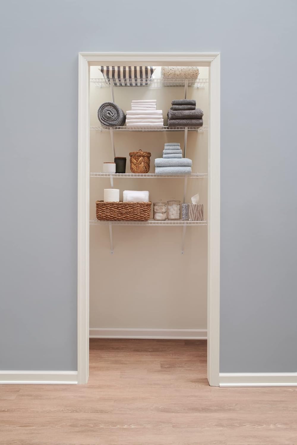 USE PLACES: Practical shelving organization for laundry rooms, linen closets, or basements. Provide additional storage space to an existing bathroom, mudroom, pantry, or linen/coat/bedding closet.