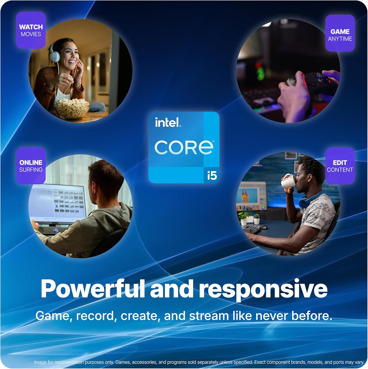 Accelerated gaming pc performance: Intel Core i5-8500T delivers 2.10 GHz great performance and up to 3.5 GHz boost via Intel Turbo Boost 2.0 and Radeon RX 550 4 GB GDDR5 (with Radeon Anti Lag and Image Sharpening with FidelityFX Super Resolution support in many titles), 16 GB DDR4 and a 512 GB NVMe SSD deliver quick boots, fast loads, and powerful pc gaming—paired with a 22 inch 1080p HD monitor for a complete gaming pc and monitor bundle.