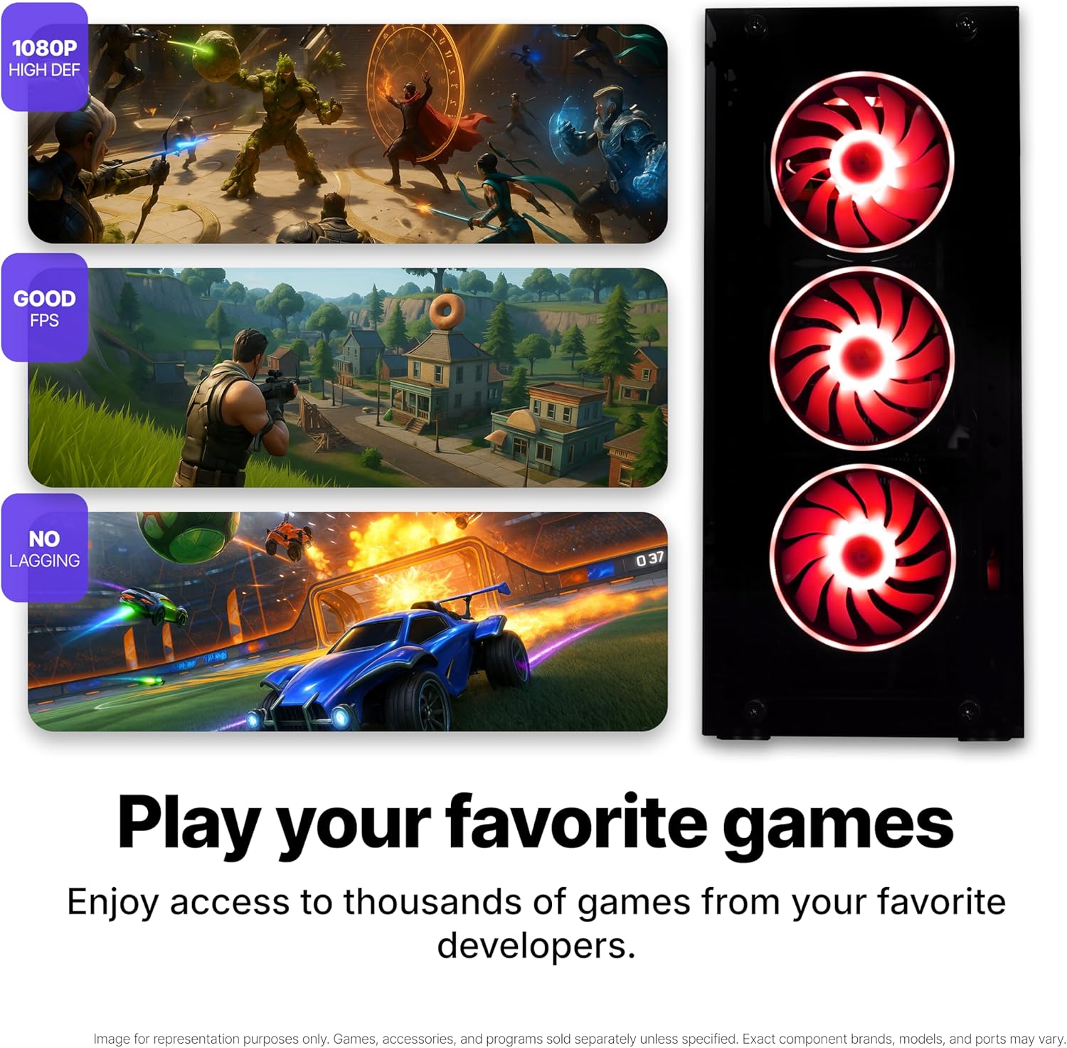 Got this as a gift to myself lol. Ok so I’m going to break this down:UNBOXING: Computer came in a nice Black Branded Box. The box itself has a QR code that takes you to a nice short video tutorial on how to set up the computer. The packaging was perfect. Nice strong soft foam for protection and double boxed. Glass is covered with removable protective film to avoid scratches. Since the case is made mostly of glass, I thought it was gonna break, but honestly SAAV did an amazing job with packaging. They even included expandable foam INSIDE the case to make sure the internals don’t get damaged. SCORE 10/10.SETTING IT UP: Easy to set up. They include a Quick Start Guide and a quick video tutorial showing you exactly how to configure the PC. They also include removable stickers that can guide you on how to connect the everything. The gaming pc in the video is a slightly different model, but you can follow along just the same. SCORE 9/10LOOKS: WOW. When I first turn it on I was floored by how good the RGB lights look. Just gorgeous. Probably gonna set it to white to give it that nice “futuristic” look. 11/10GAMING PERFORMANCE: Very good. It does what I need it to do. So far from my steam and other libraries I installed: DOTA 2, Fortnite, Roblox, GTA5, League of Legends, Rocket League, Skyrim, COH2, Grid and Valorant. All perform well and look good graphics wise. All 1080p hd, some had to set it Medium settings FYI. Even though it is 512gb the speed of the nvme drive is insane, the file transfer and installation speed is off the charts. This setup and hardware was clearly optimized by someone that knows what they’re doing. Honestly, for the price the performance is phenomenal. SCORE 9/10ACCESSORIES: RGB Keyboard and Mouse included. WIFI adapter is adequate, and the power cord is about 6ft long. I’m using with my own 24″ monitor and it was the perfect fit. The included accessories get the job done and have a solid look and feel. SCORE 8/10OTHER STUFF BESIDE GAMING: Currently using for my school work. Runs everything perfectly. I like to use chrome and I can open multiple tabs without an issue. No bloatware included in the computer, which is nice. The WIFI antenna works good. I got fiber in my house and so far I can stream in HD with no issues. SCORE 10/10SUPPORT: Had to call support because I had a question regarding the delivery. They answered the phone quickly and went above and beyond to accomodate me. SCORE 10/10OVERALL: This is a good jack of all trades gaming pc. Looks amazing in my room and for the price you can’t beat it. It literally got delivered overnight, the components are quality and the performance is amazing. I would recommend this to anyone I know over a console any day of the week.