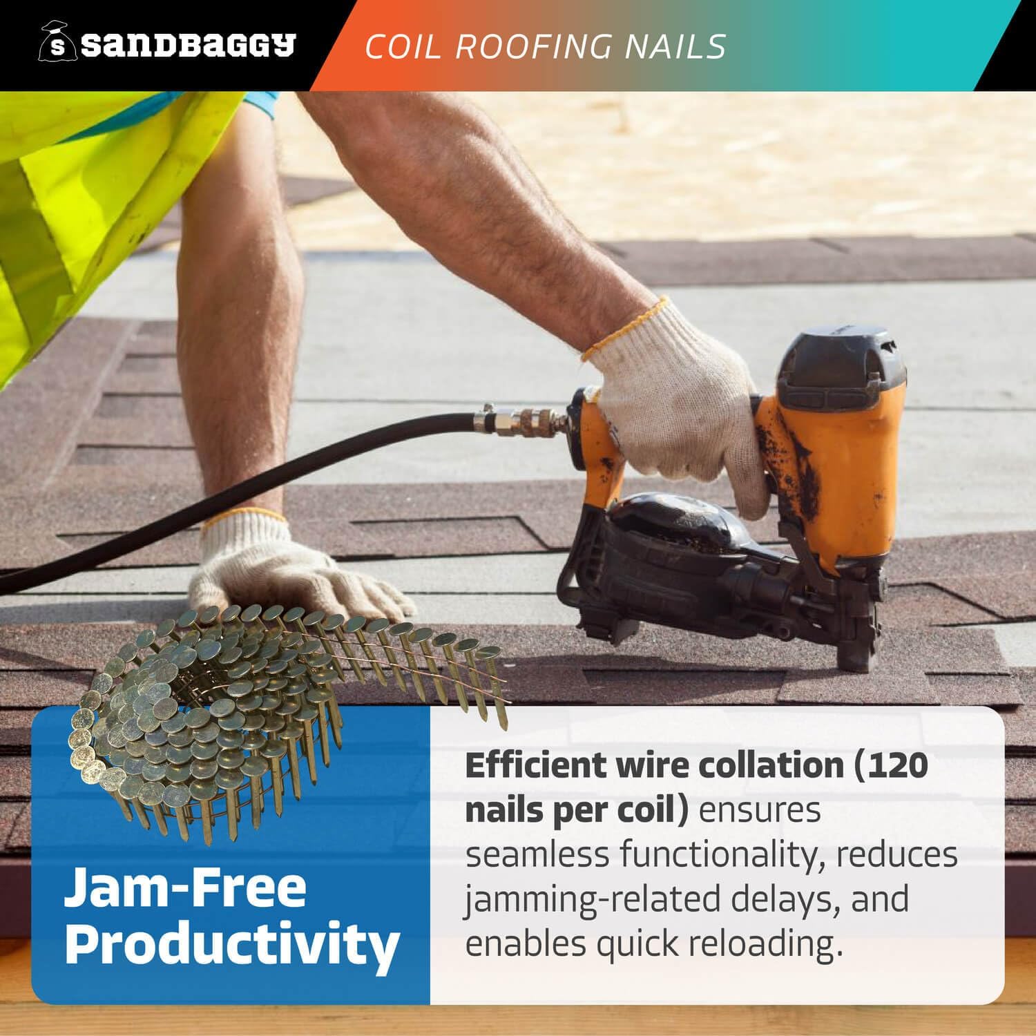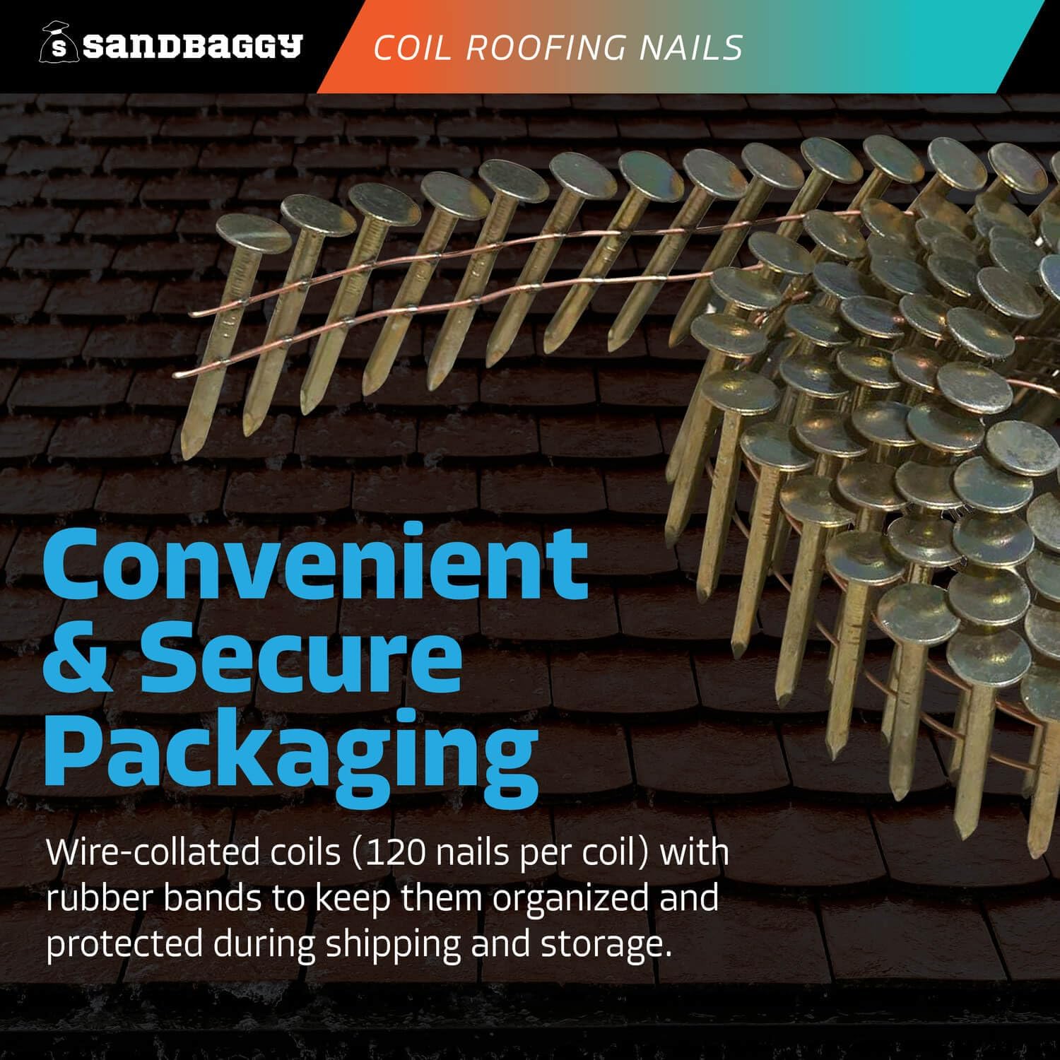 Sandbaggy 1-1/4″ Coil Roofing Nails For Shingles – 15 Degree – Galvanized – Wire Collated, 11 Gauge – 120 Nails Per Coil (5)