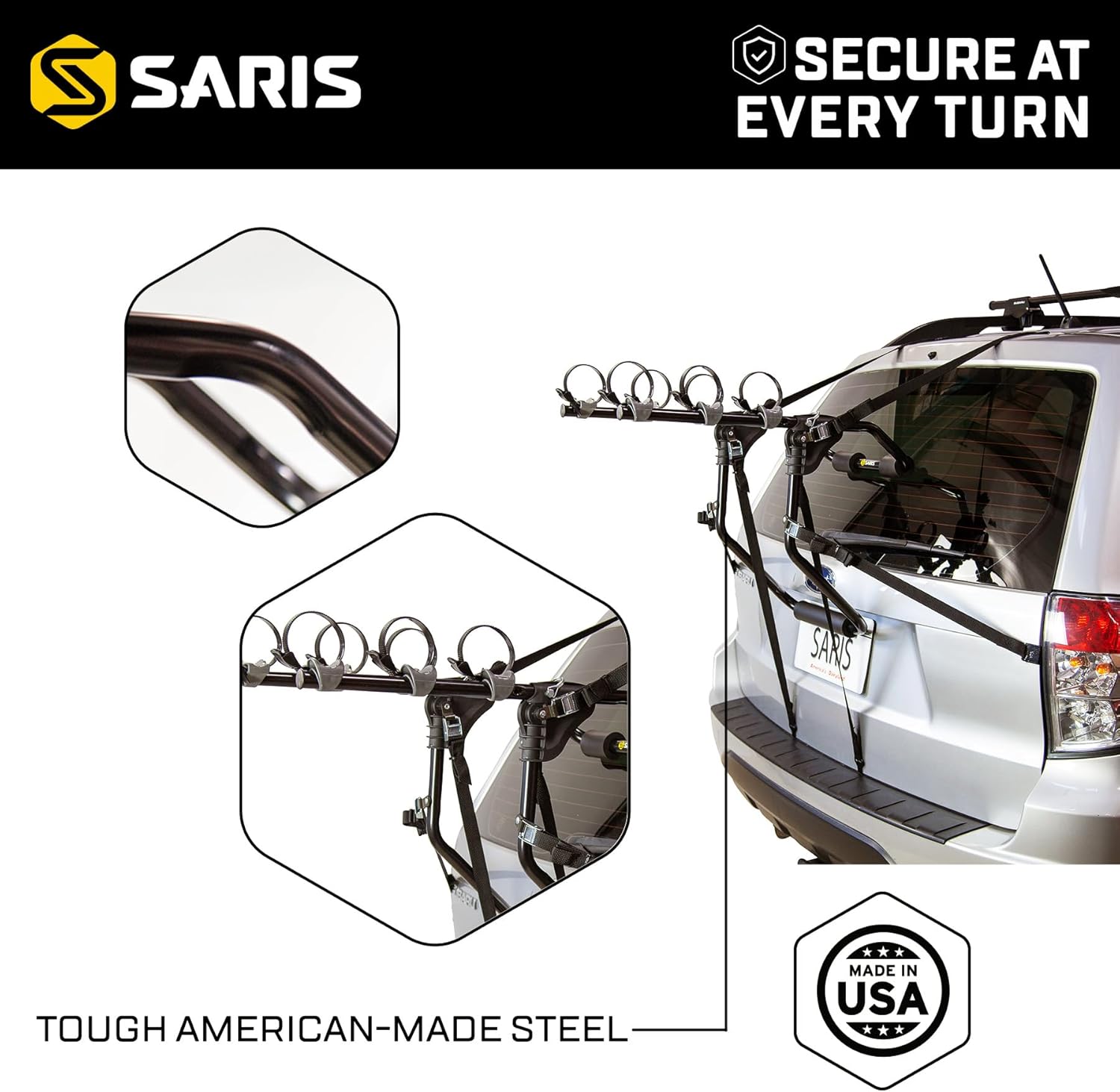 Saris Guardian Trunk Bike Rack – No-Hitch Bicycle Carrier for Car, Sedan, Hatchback, SUV, Van, – Foldable Steel Mount – Easy Installation, American-Made, Fits Up to 3 Bikes (35 lbs Each)