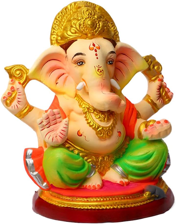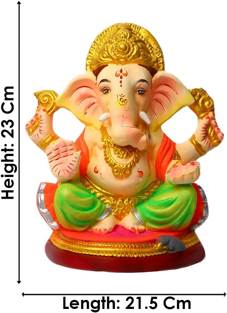 Package Content: 1 Pc of 9 Inch Beautiful Colored Eco Friendly Ganesha Idol, Visarjan and Puja Vidhi Manual
