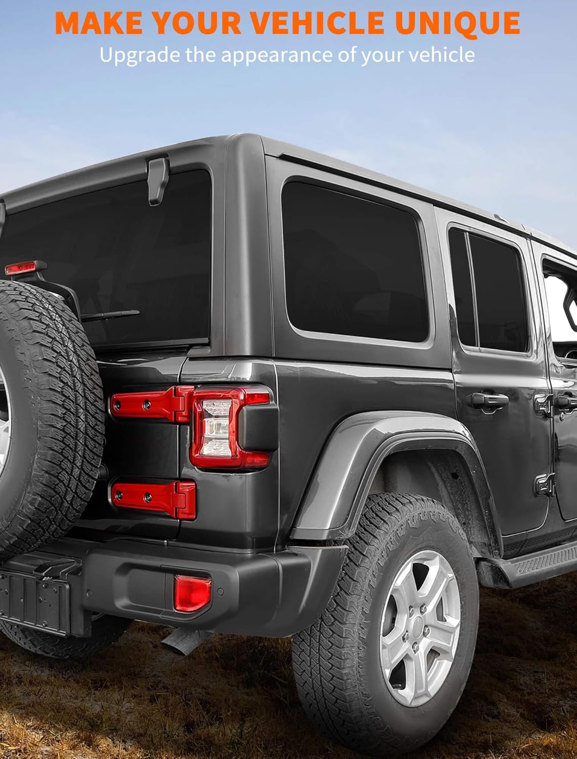 Savadicar 2-Piece Red Tailgate Hinge Trim Cover for Jeep Wrangler JL JLU 4xe & Gladiator JT 2018-Present – Exterior Rear Gate Hinge Accent Styling, Easy Install Upgrade Accessories