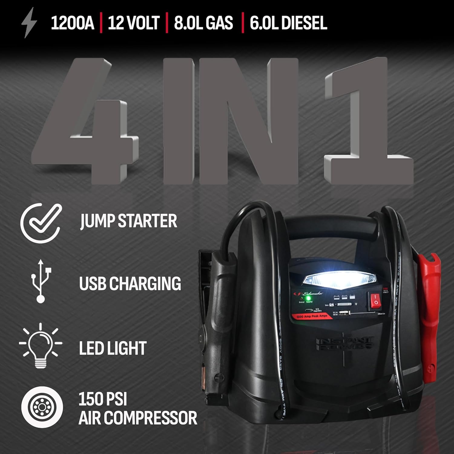 Immediate Jump Starting Power – Delivers 1200-amp jump start strong enough to 8.0L gas and 6.0L diesel engines