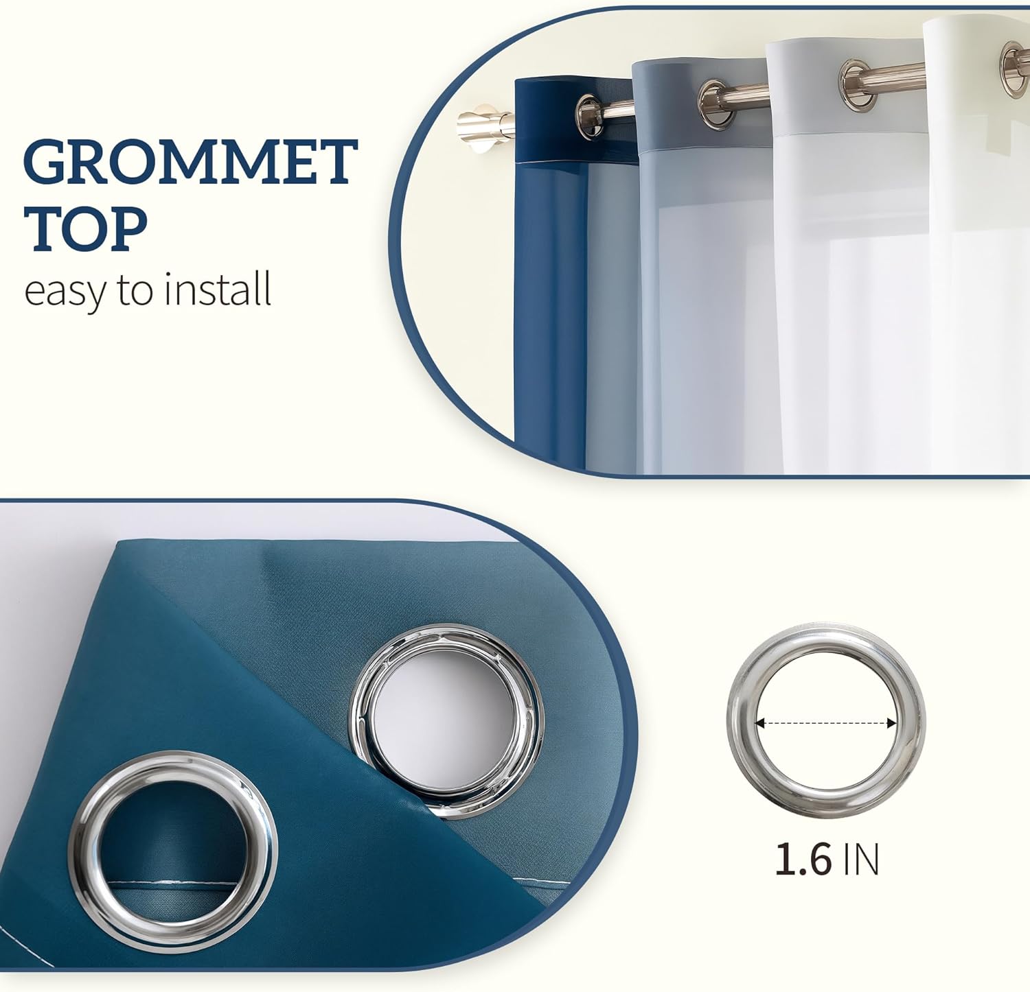 Set of 2 Chiffon Ombre Sheer Curtains, Gradient Window Curtain Panels Drapes, Grommet Top Semi Sheer, Voile Window Treatment for Girls Bedroom, Living Room, Patio Door, 52 x 84 in, Navy Blue