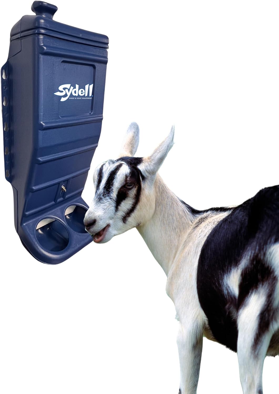 Sydell Sheep and Goat Grain Mineral Feeder, Large Outdoor Forage Grain Feeding System, Supports Up to 10 Small Livestock, Weather Resistant Heavy-Duty Plastic, Fence Mounted