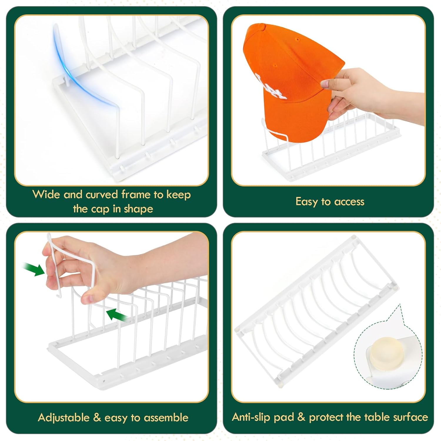 Each rack can hold 10 caps and there’re two hat racks in the package. The space is adjustable for fitting the multiple styles of caps to keep their natural shape without being deformed.
