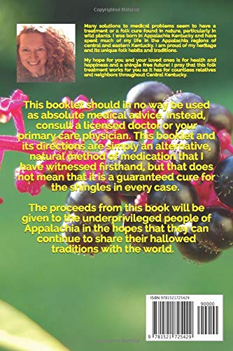 This concise but meticulous book recounts my personal experience with the shingles virus and details how my uncle got relief from his symptoms overnight using Appalachian healing techniques handed down through the generations. Many solutions to medical problems seem to have a treatment or a folk cure found in nature, especially in wild plants. I was born in Appalachia Kentucky and have spent much of my life the Appalachia regions of central and eastern Kentucky. I am proud of my ancestry and its unique folk habits and traditions. I have witnessed healings of people cured of ailments that are beyond the explanation of medical science. This book starts where medical science ends, and the information here would be a value to anyone interested in alternative healing methods surrounding the shingles virus. This booklet should in no way be used as absolute medical advice. Instead, consult a licensed doctor or your primary care physician. This booklet and its directions are simply an alternative, natural method of medication that I have witnessed firsthand, but that does not mean that it is a guaranteed cure for the shingles in every case. The proceeds from this book will be given to the underprivileged people of Appalachia in the hopes that they can continue to share their hallowed traditions with the world.