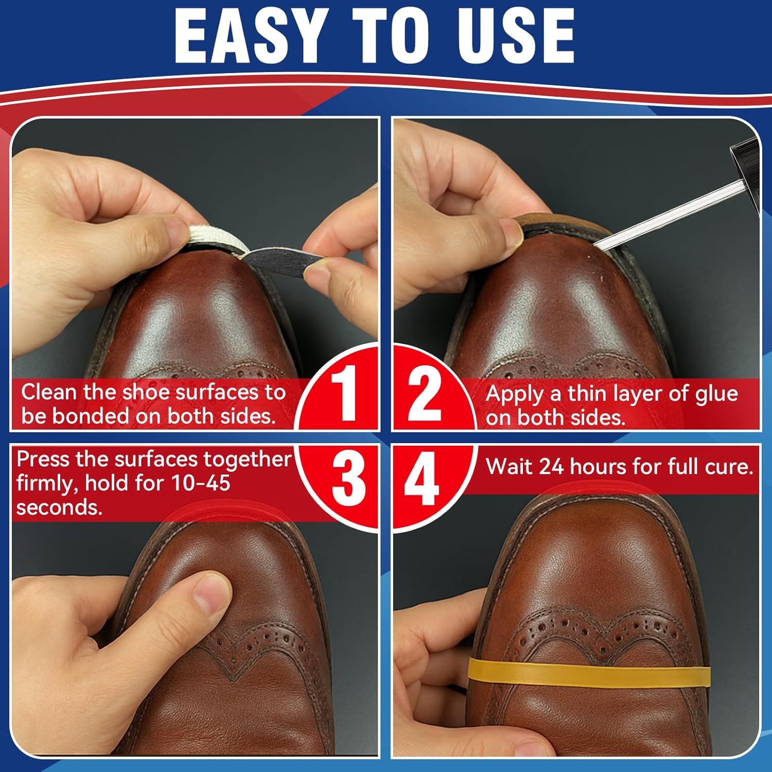 Superior Adhesion: Our shoe glue sets in just 10-45 seconds for fixes, and achieves full curing in 24 hours. Its adhesion keeps improving during the curing process, making the repaired parts (like soles, heels or uppers) tough enough to withstand daily walking, running or long-hour wearing