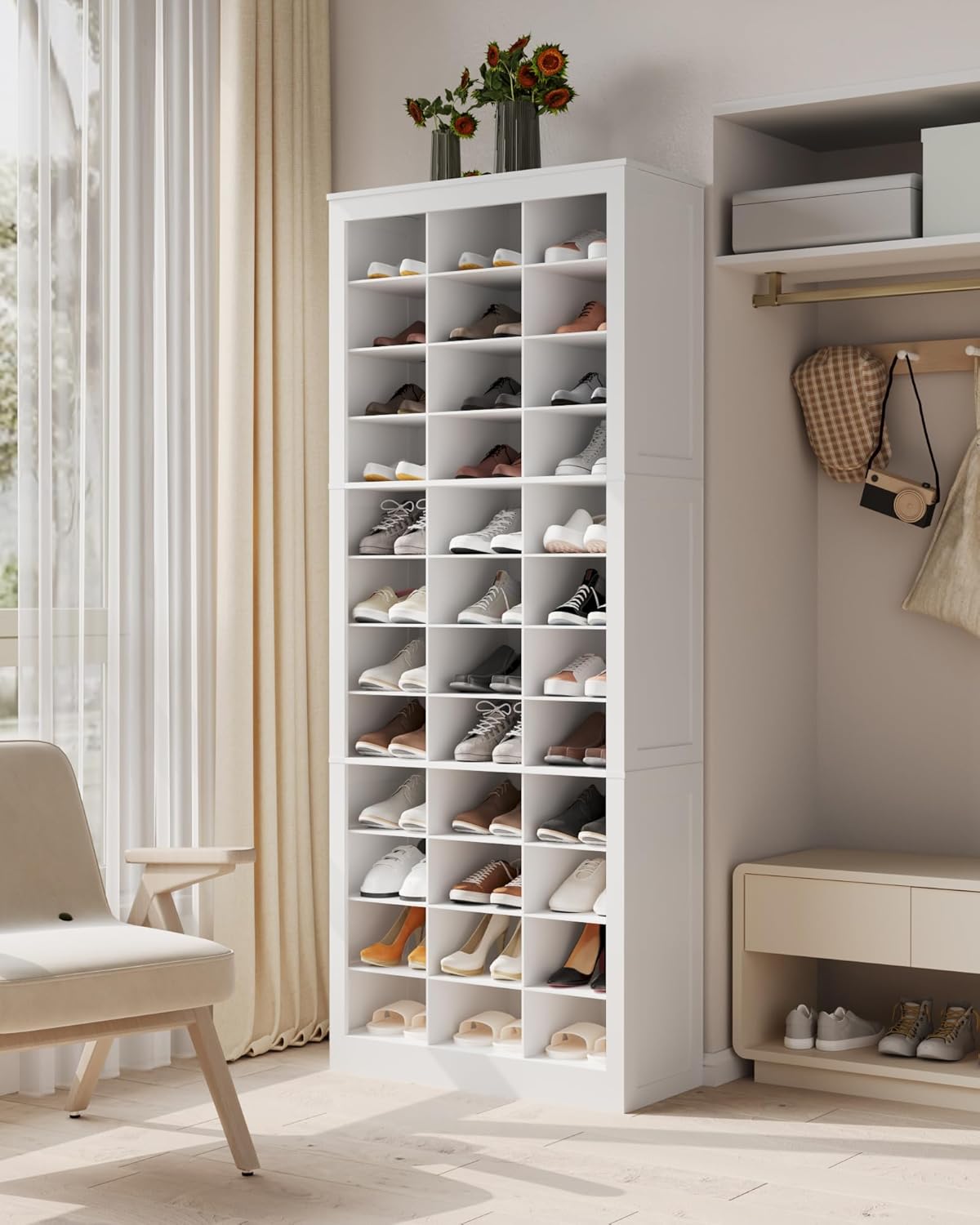 Shoe Storage Cabinet, 36 Pairs Free Standing Closet Organizer, 8.8 inch Widened Cell Wood Shoe Organizer, 12 Tiers Vertical Space Saving Shoe Rack for Entryway, Bedroom, White SR20703X