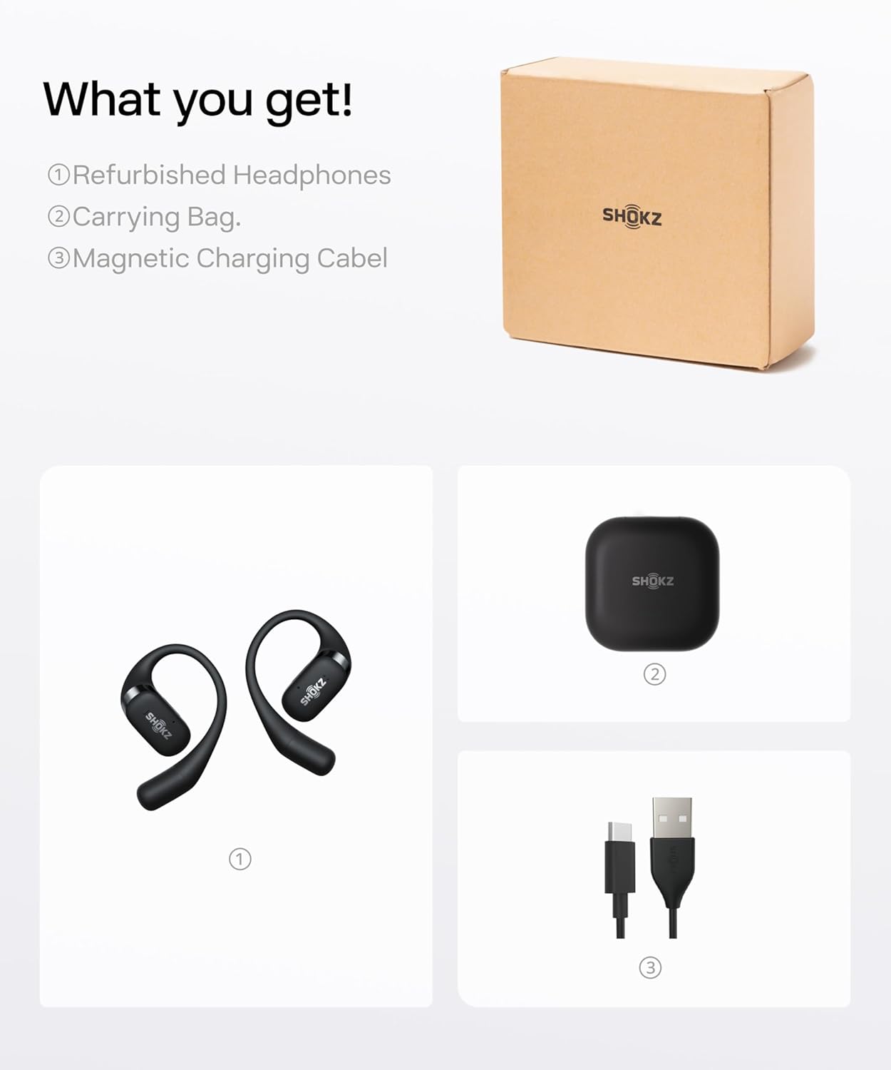 SHOKZ OpenFit – Open-Ear True Wireless Bluetooth Headphones with Microphone, Earbuds with Earhooks, Sweat Resistant, Fast Charging, 28HRS Playtime, Compatible with iPhone & Android (Renewed)