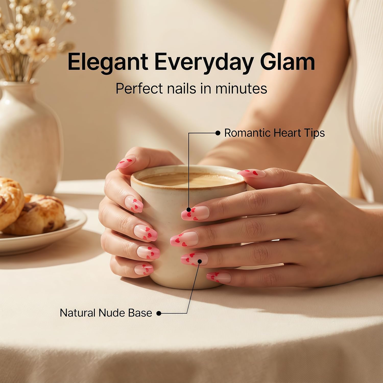4 reviews for Short Press on Nails Almond Pink with Red Heart for Valentines with Women 24Pcs