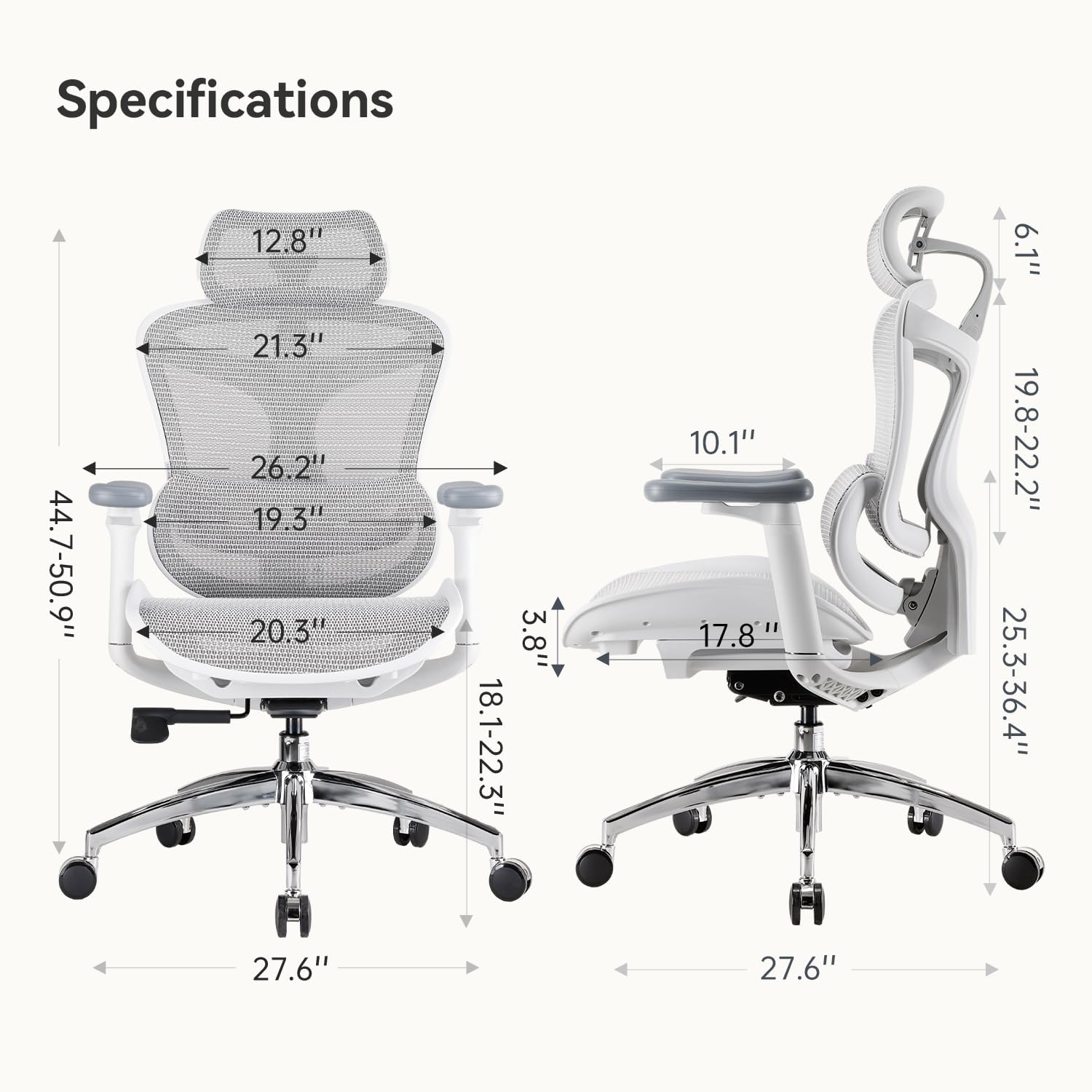 SIHOO Doro C300 Ergonomic Office Chair with 3D Armrests, Dynamic Lumbar Support, and Seat Depth Adjustment for Home Office (Grey)