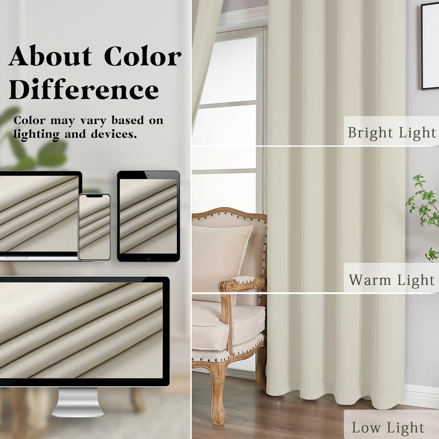 Light Blocking: Our curtains blackout block 80% to 50% of light and UV, with darker colors up to 80% and medium shades at 65%. Even white curtains reduce light by 50%. Perfect for any room or lighting preference. Choose based on your room’s direction and personal style. Ideal for bedroom privacy or living room ambiance. Our curtains blackout blend function with style, fitting seamlessly into your lifestyle.