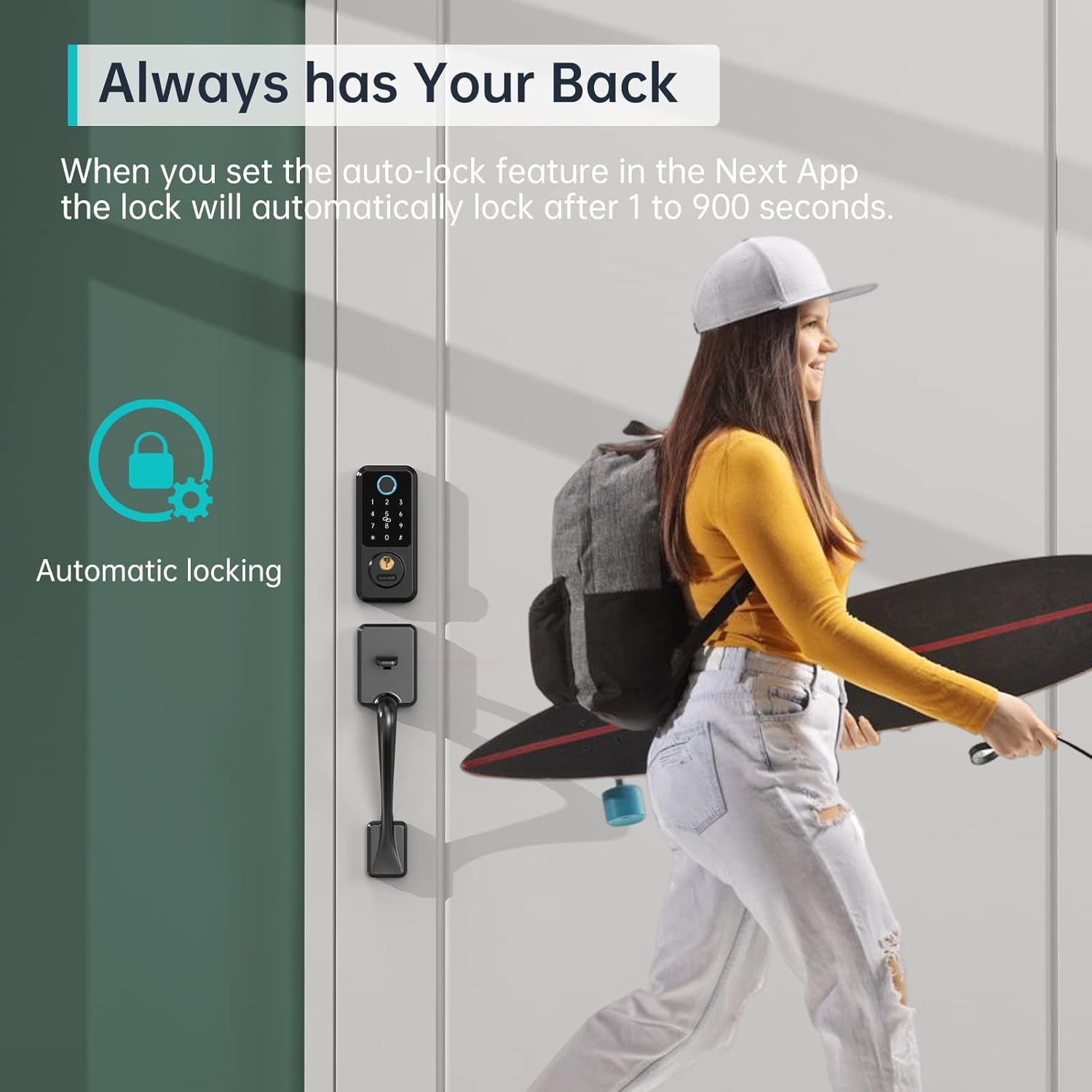 Biometric Fingerprint Unlock: Gone are the days of fumbling for keys. Hornbill smart lock recognizes your fingerprint and unlocks the door in under 2 seconds. Store up to 50 fingerprints in the Nextlock app for frequent guests or additional finger options for yourself. Never worry about lost, stolen or copied keys again.