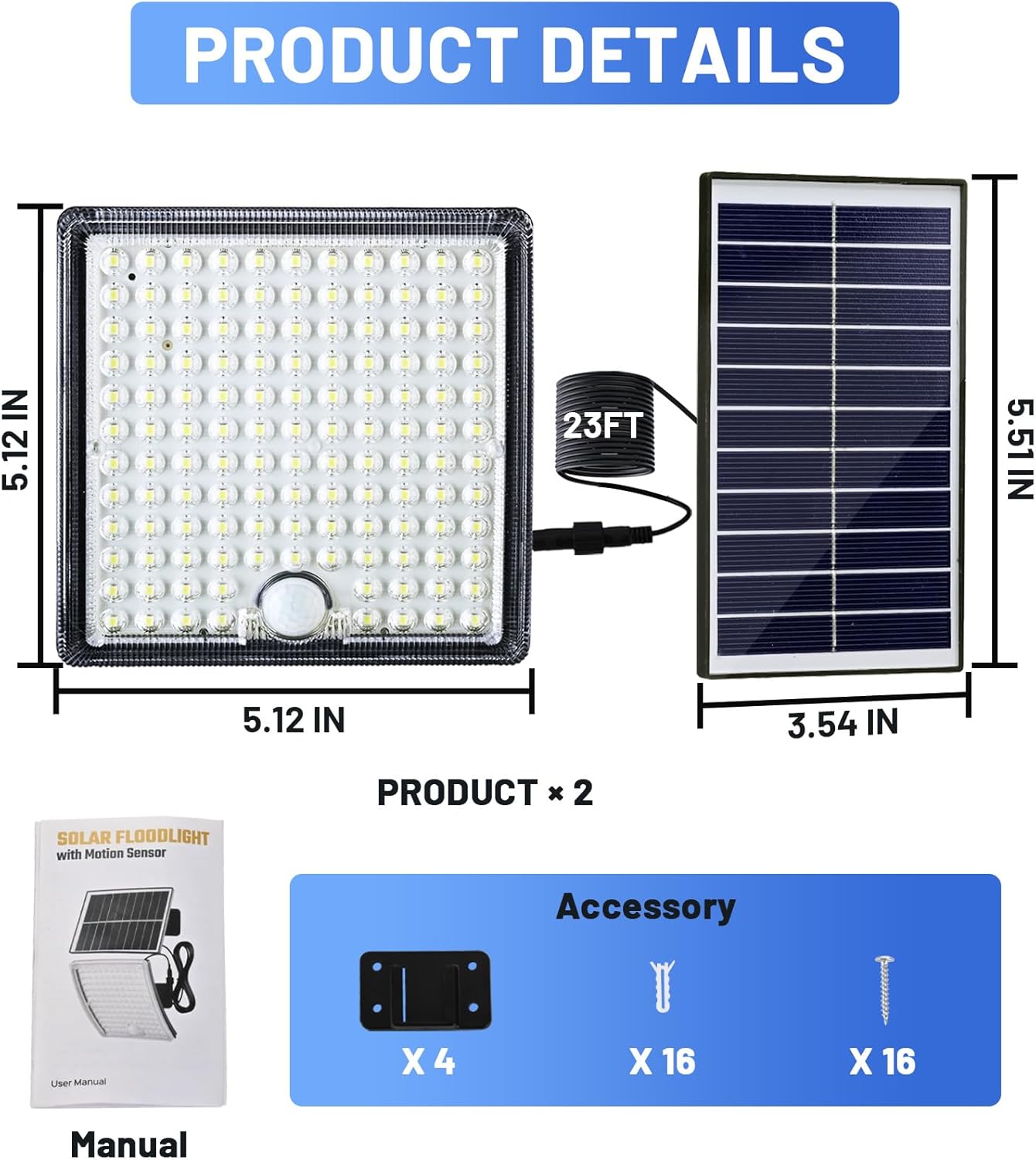 【Reliable Quality and 1-Year-Guarantee】The solar motion lights outdoor waterproof & solar flood lights outdoor waterproof have undergone rigorous quality testing before leaving the factory to ensure that every customer can use the solor outside light with confidence. We provide a 1-year-guarantee service. If you encounter any problems while using the solar light outdoor & solar powered lights, please feel free to contact us and our after-sales team will provide you with solutions as soon as possible. We believe that the excellent durability and leading after-sales service of our lámparas solares para exteriores, luz solar para exterior will bring a better experience to your lighting life.