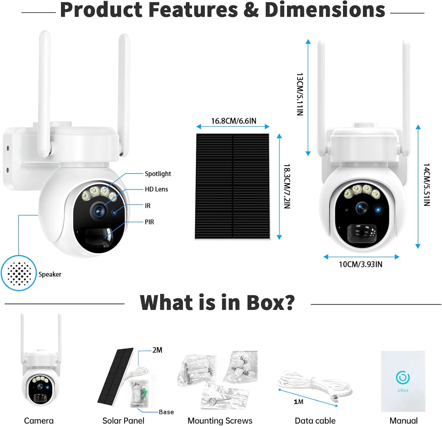 Solar Security Cameras Wireless Outdoor – 2K WiFi Cameras for Home Security with Solar/Battery Powered, 360° View Pan/tilt, Color Night Vision, ABS Fireproof, IP66 Weatherproof, 2-Way Audio
