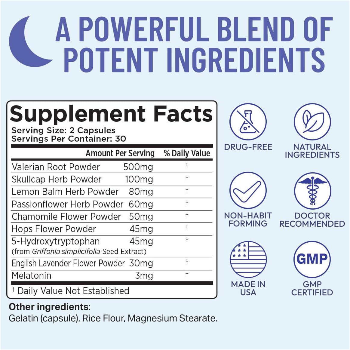 Clinically Studied Ingredients – Features proven sleep aids like Valerian Root, Chamomile, Lemon Balm, and Hops, all known to promote deep, uninterrupted rest naturally.*