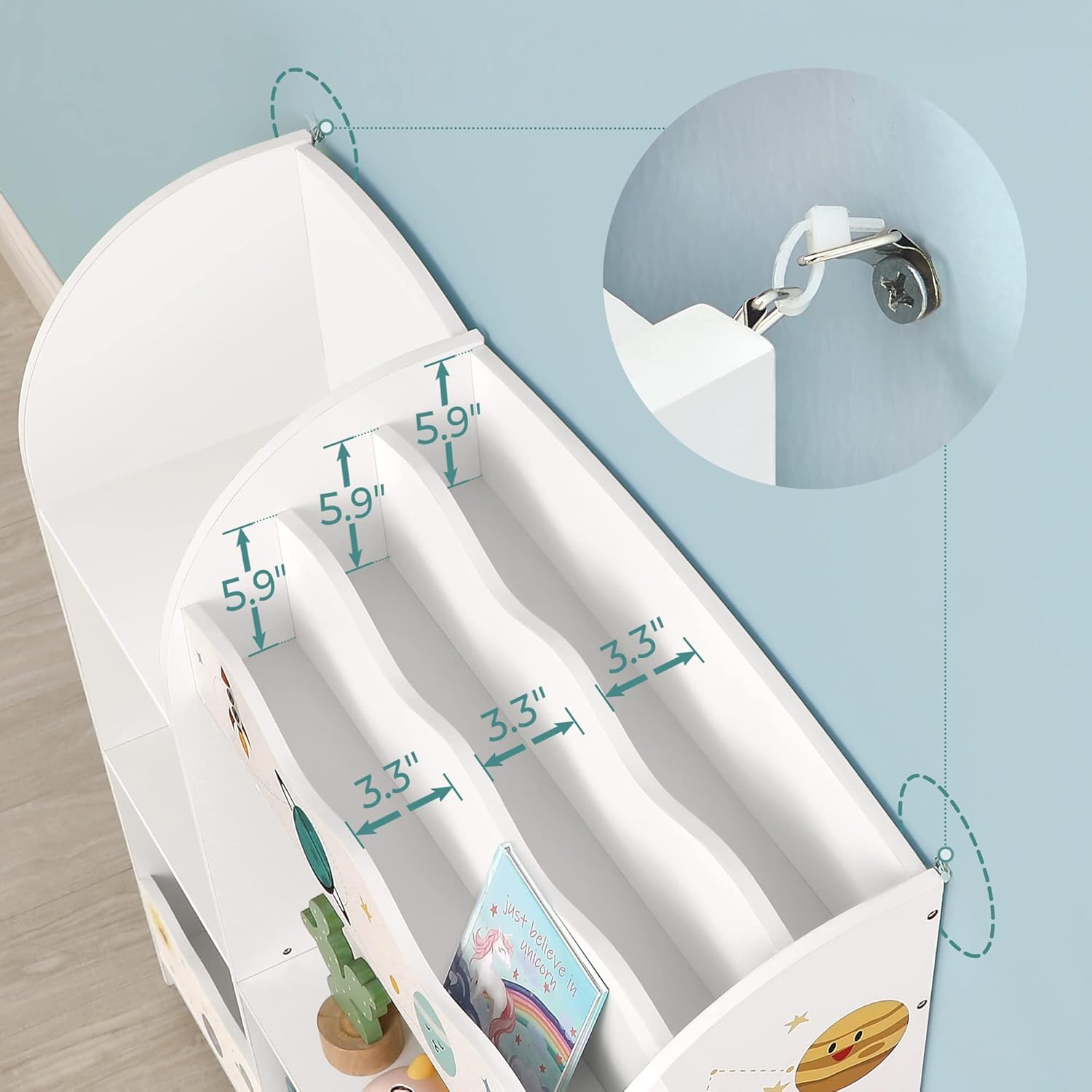 [Safety First] With your child’s safety in mind, this bookshelf for kids features rounded corners to prevent bumps and includes an anti-tip kit to secure it in place, giving you peace of mind while your little ones enjoy their reading and playtime