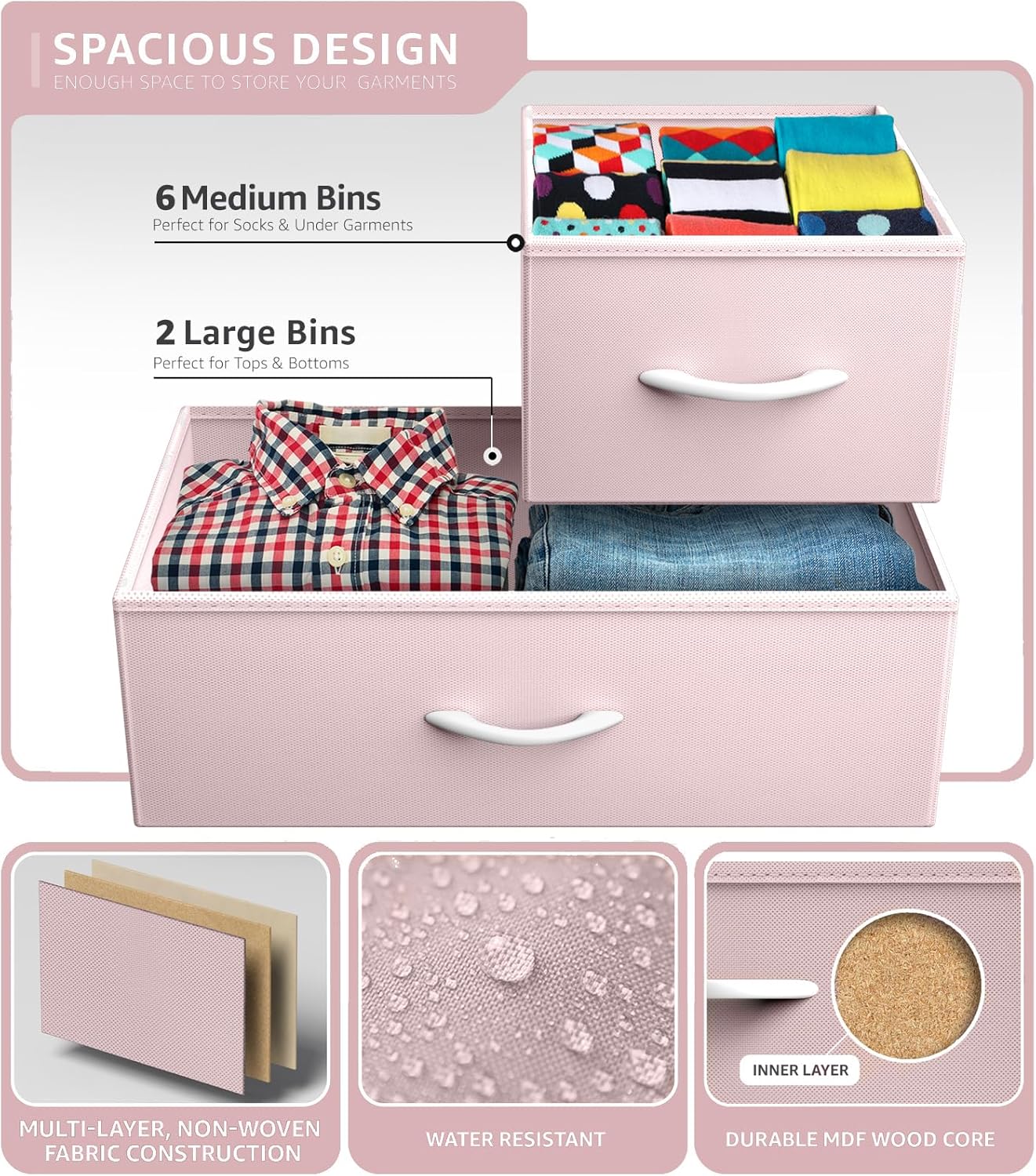 Sorbus Kids Dresser with 8 Drawers – Chest Organizer Unit with Steel Frame Wood Top & Handle, Fabric Bins for Clothes – Wide Furniture for Bedroom Hallway Kids Room Nursery & Closet