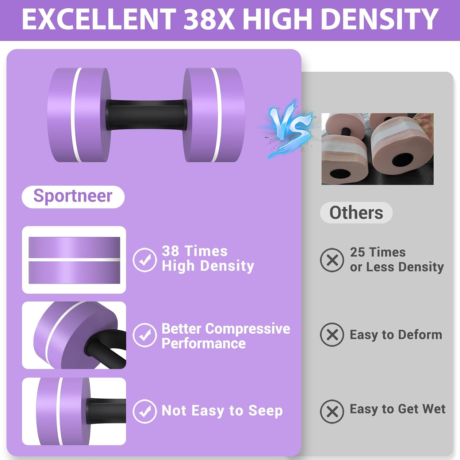 38 Times High-Density Material: Sportneer aqua fitness water weights are made from 40-times high-density EVA foam that is odorless, quick-drying, waterproof, and durable – perfect for long-term use in pool exercise and aqua aerobics equipment routines
