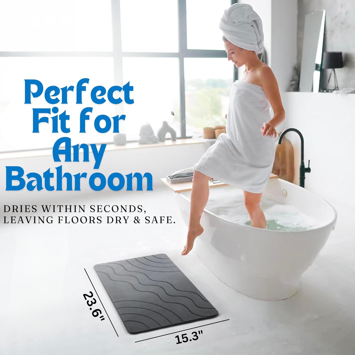 ✅𝐈𝐧𝐬𝐭𝐚𝐧𝐭 𝐖𝐚𝐭𝐞𝐫 𝐀𝐛𝐬𝐨𝐫𝐩𝐭𝐢𝐨𝐧 & 𝐐𝐮𝐢𝐜𝐤 𝐃𝐫𝐲𝐢𝐧𝐠 – This stone drying mat for bathroom keeps your bathroom floor dry and safe within seconds. Our drying stone bath mat absorbs water instantly, offering superior protection from wet floors.