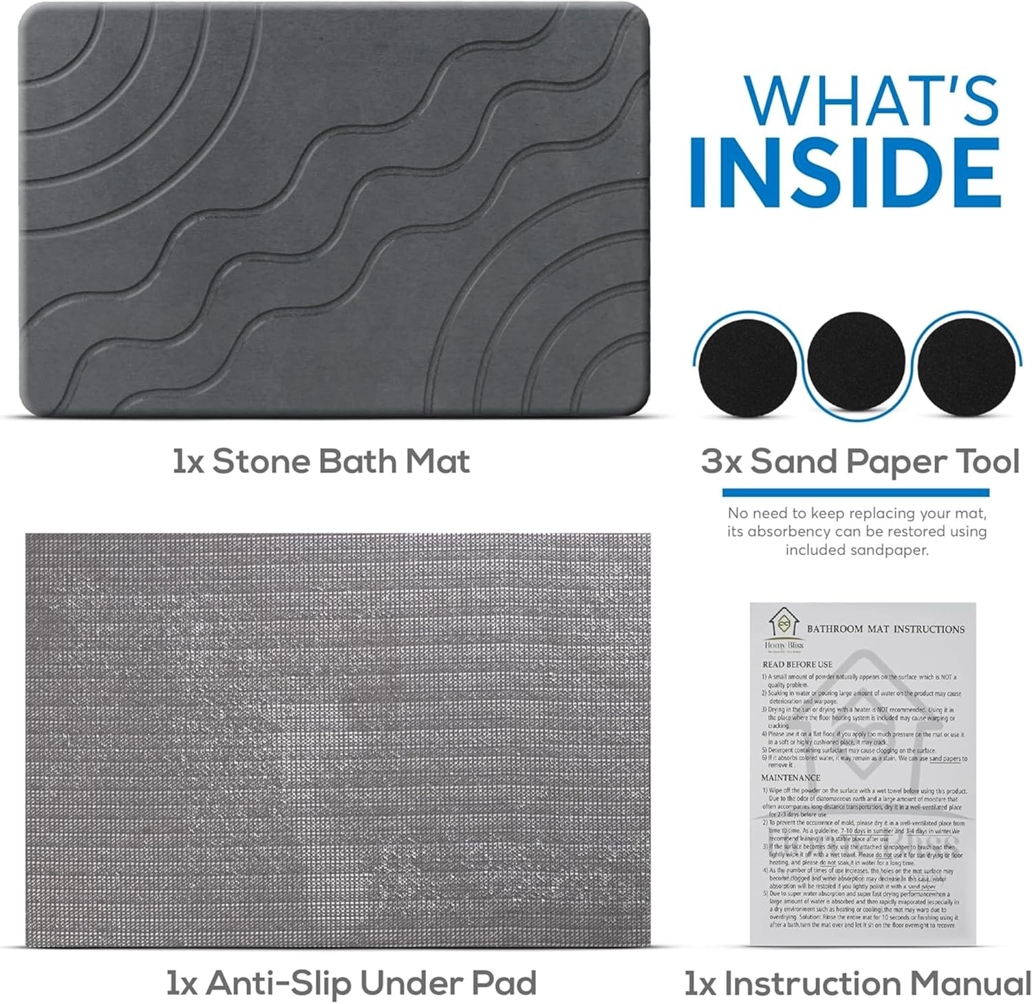 Stone Bath Mat – Quick Drying Diatomaceous Earth Bath Mat, Super Absorbent Bathroom Stone Mat, Non-Slip Shower Stone Mat, Modern Water Absorbing Bath Mat for Bathroom & Kitchen (23.6” x 15.3”, Gray)