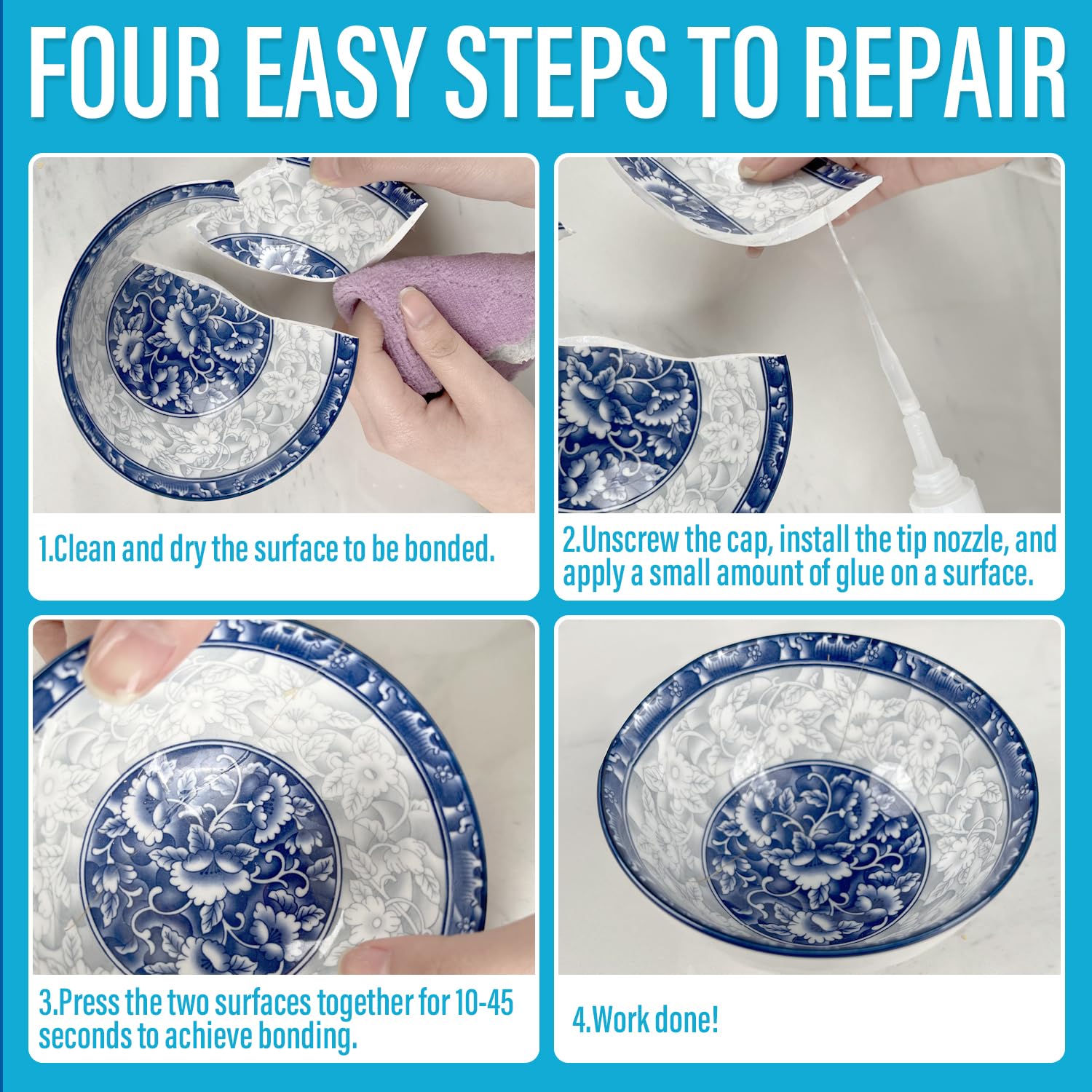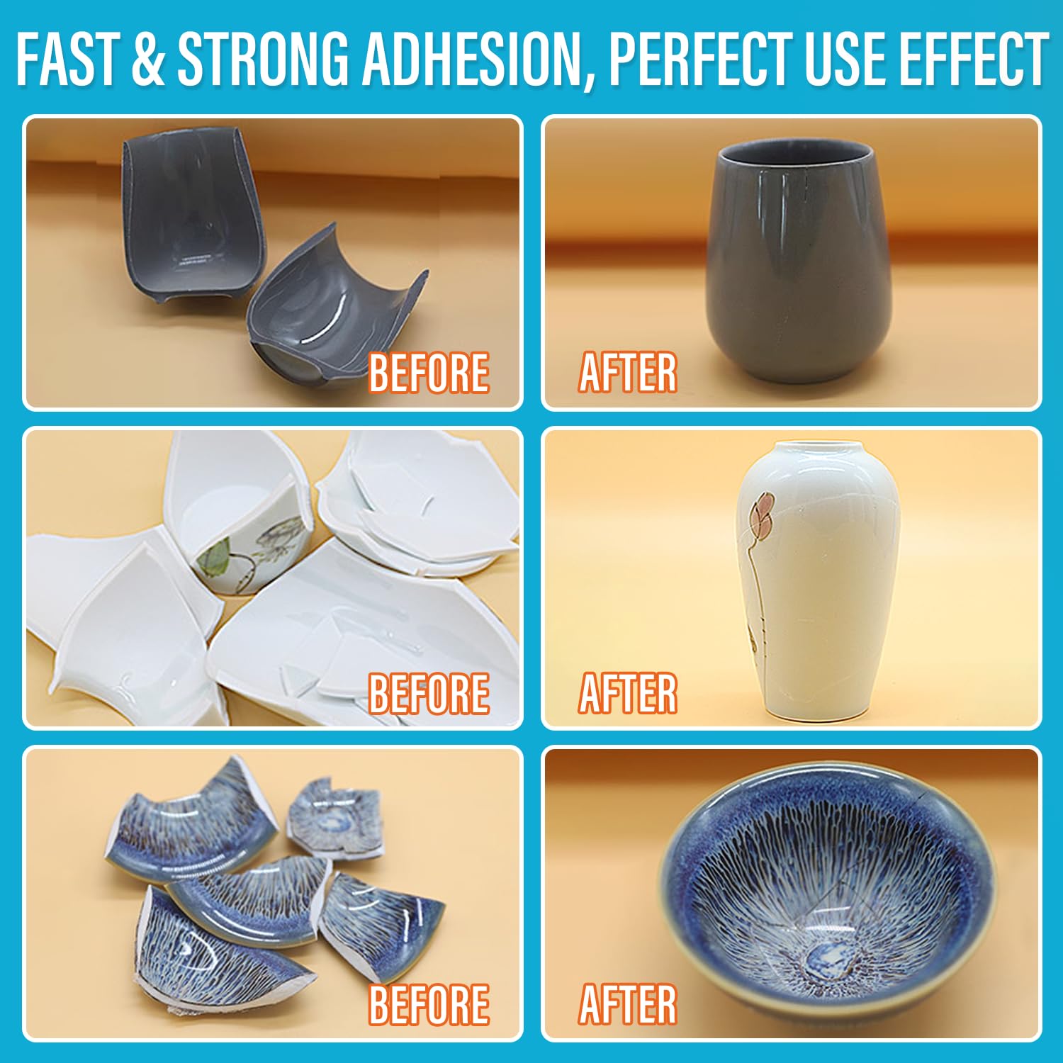 Ankita ceramic glue is strong, durable, and able to withstand temperature changes. It dries clear to avoid visible residue on the repaired item, bonds securely with the ceramic material and creates a long-lasting repair that can endure regular use, cleaning, and potential temperature fluctuations.