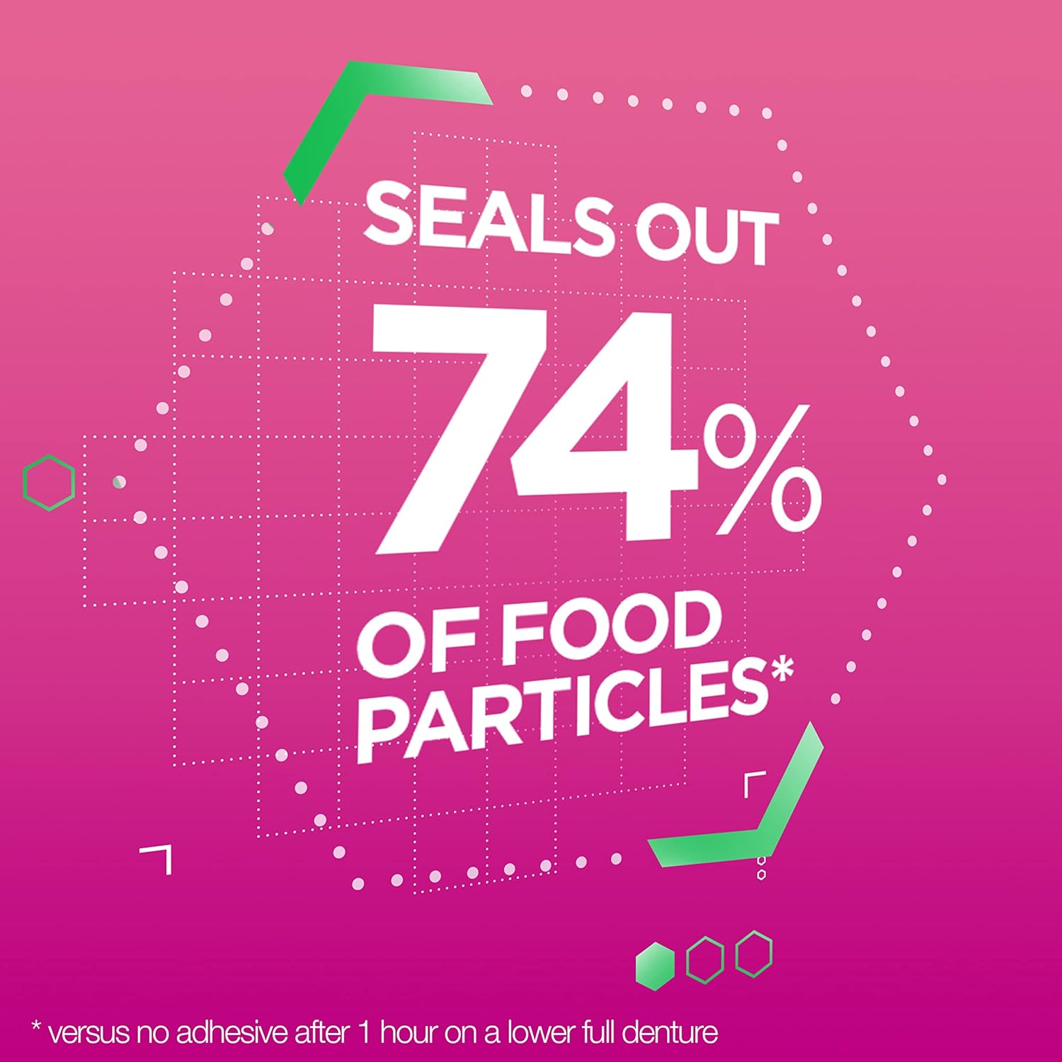 Super Poligrip denture products seal out food particles to prevent gum irritation