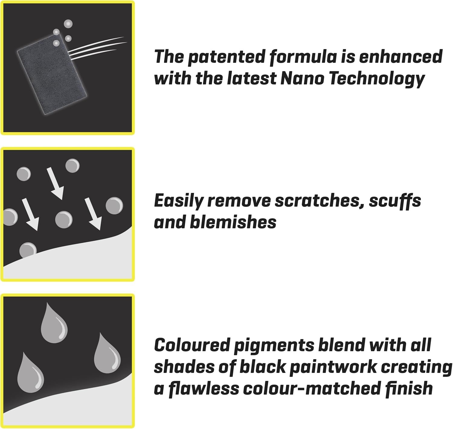 The coloured pigments blend in with all shades of paintwork, cleaning and removing oxidation, creating a flawless colour-matched finish.