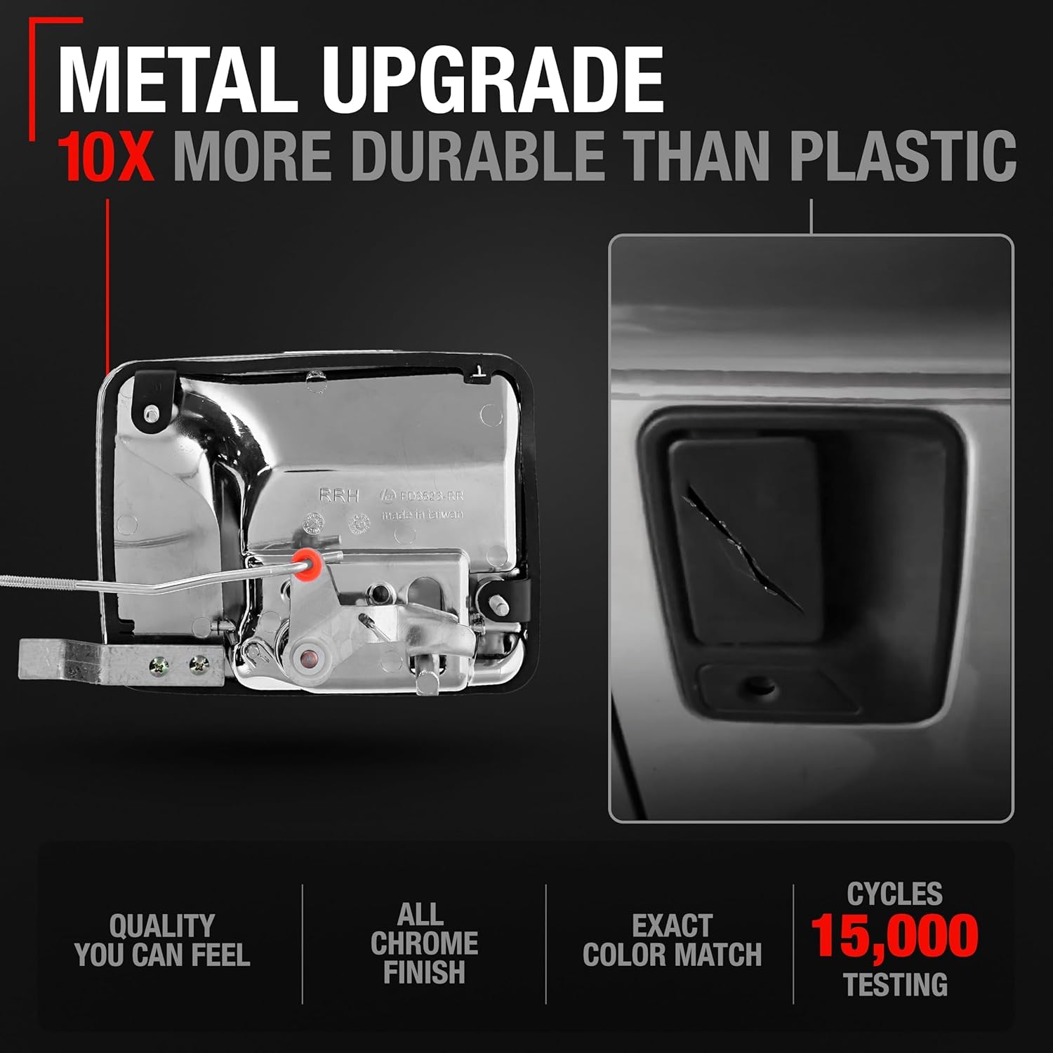 DURABLE MATERIAL: Made from upgraded metal, the handle’s luxurious all chrome finish ensures long-term durability and matches your vehicle’s exterior.