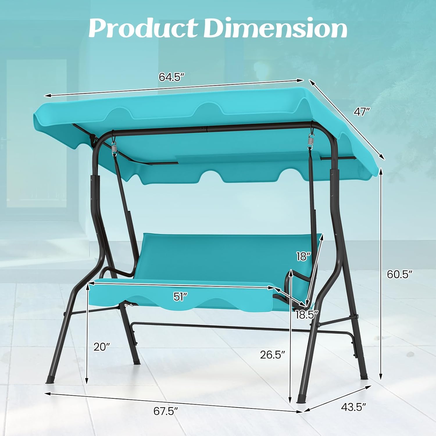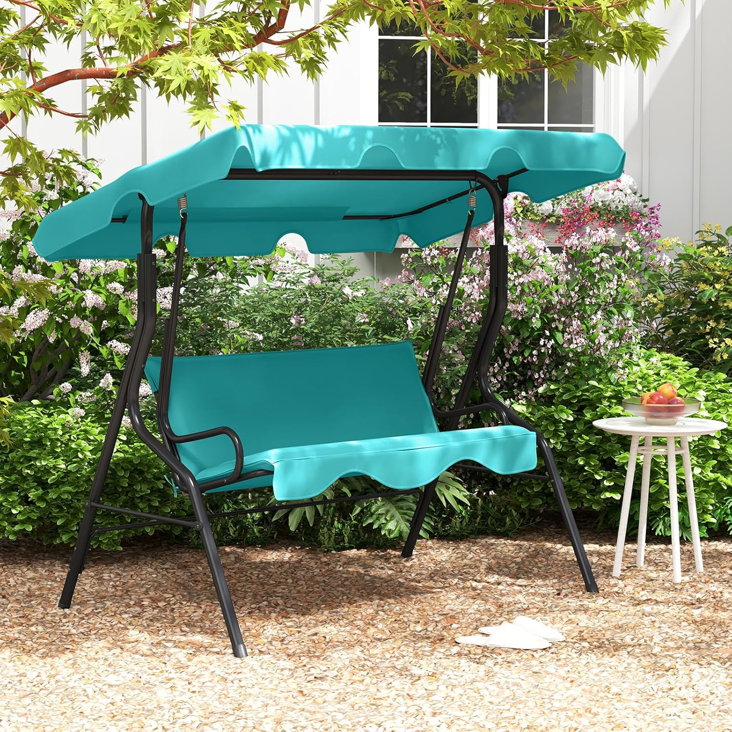 Tangkula 3 Person Porch Swing, Patio with Removable Cushion & Powder-Coated Steel Frame, Outdoor Swing with Canopy for Porch, Backyard, Garden, Balcony (Turquoise)