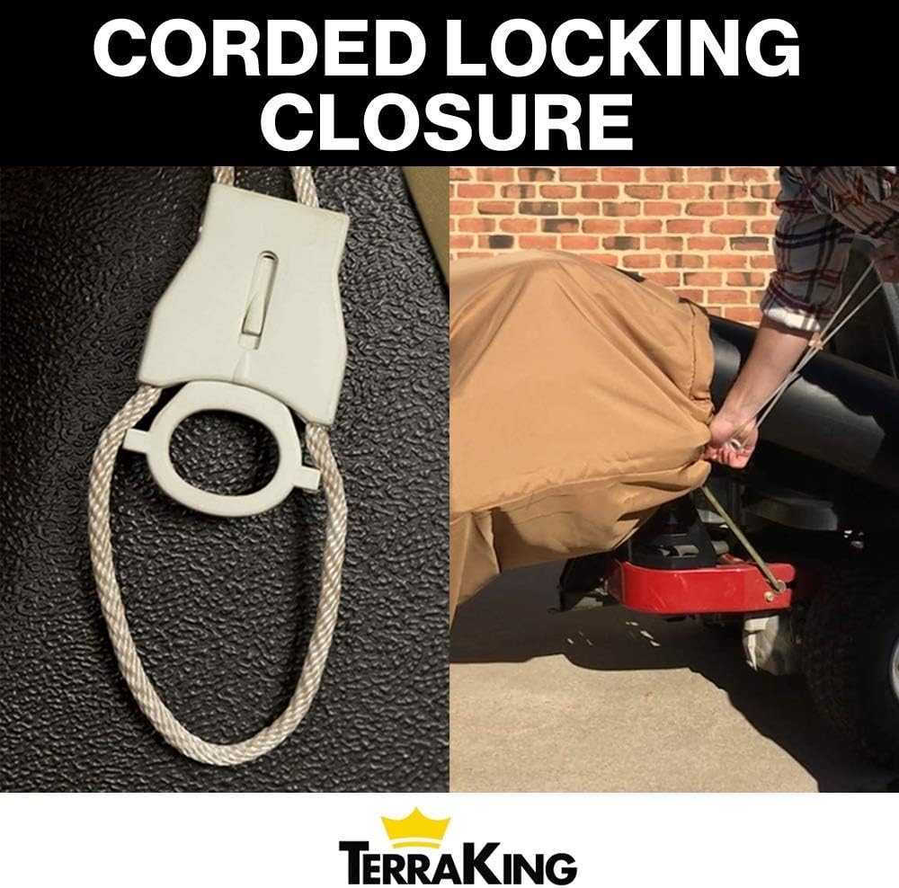 WORK SMARTER NOT HARDER: In a matter of seconds, our TerraKing leaf bag effortlessly slips over the hood of your existing three-bag collection system and is easily secured with a two-cord locking system. Our abrasion-resistant XL Leaf Bag features a front debris flap that ensures dust and leaves remain inside. With TerraKing, save time and work efficiently!