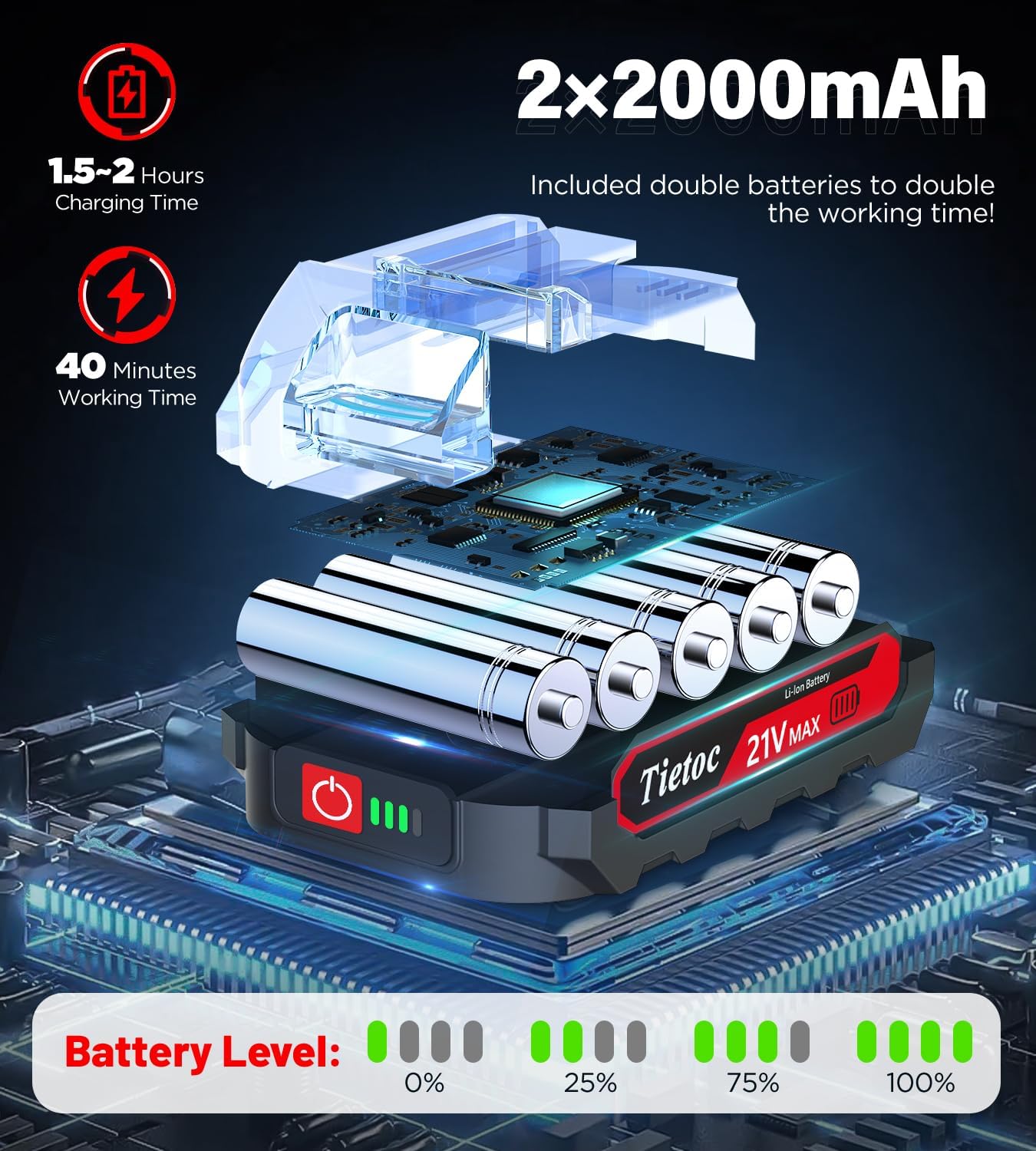 2 LARGE CAPACITY BATTERIES: Equipped with 2 x 2000mAh removable & rechargeable batteries (easy to install – it just slides on), the cordless mini chainsaw will finish all your cutting, even in the field! Charge level indicator of the battery (Some Other Mini Chainsaws Do Not Have That!) makes you know when it’s time to charge it, and self-overload & temperature protection provide batteries much longer life.