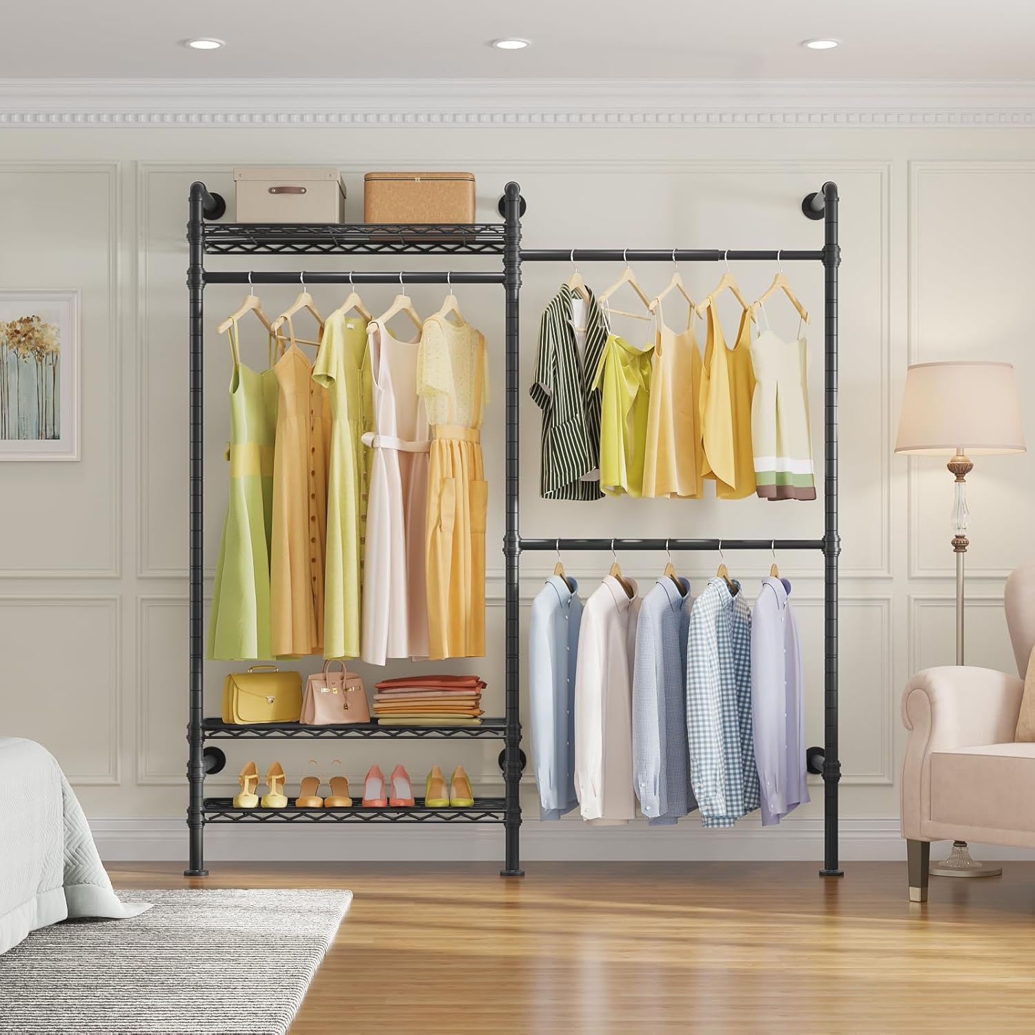 Multifunctional Storage Closet — Wall clothing rack can fit variety of you needs as an industrial wardrobe rack, hanging clothes rack, valet stand, coat stand, toilet rack bathroom shelf or wall hanger for clothes storage rack in the bedroom, living room, laundry room, retail store, washroom, bathroom
