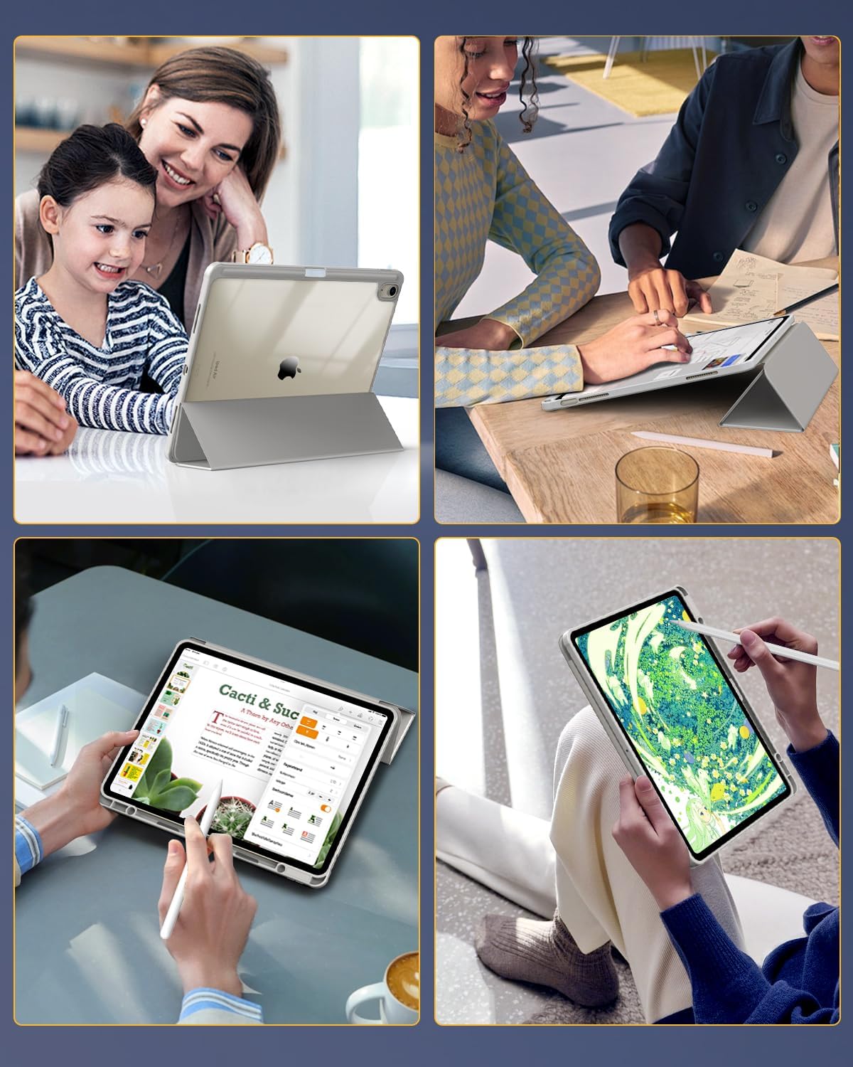 Questa è la combinazione perfetta di protezione, eleganza e funzionalità . Il design sottile con retro traslucido valorizza lâiPad senza appesantirlo, mentre il guscio rigido protegge efficacemente da urti e graffi.La funzione stand regolabile è comodissima per scrivere o guardare video,.Leggera ma resistente, è una scelta eccellente per chi cerca qualità a un buon prezzo. Super consigliata!