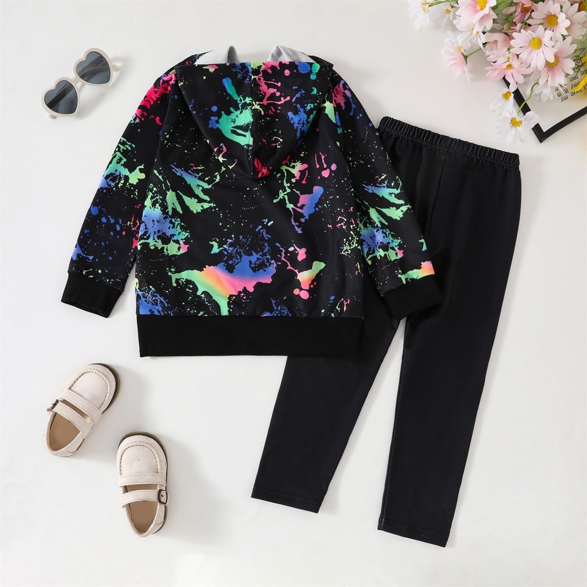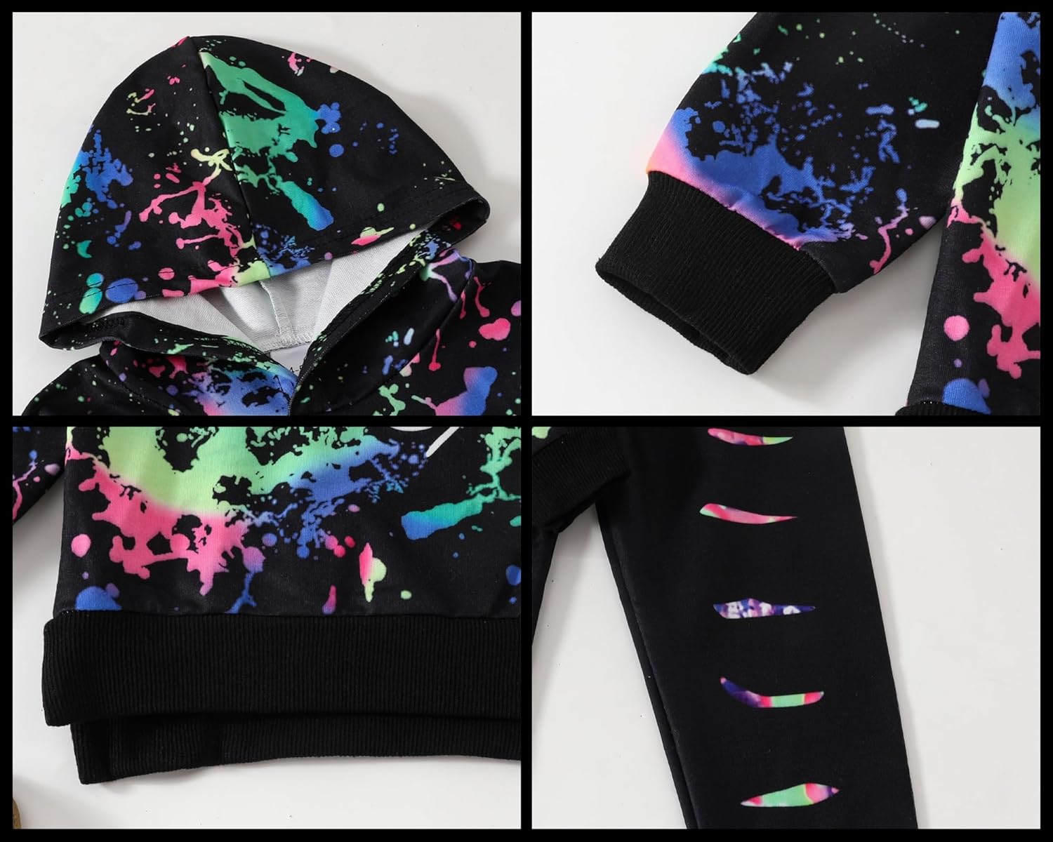 Toddler Baby Girls Clothes Long-sleeve Tie Dye Hoodie Pullover and Sweatpants Heart Print Hooded Outfits Set