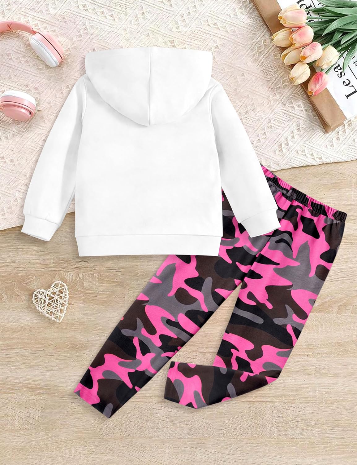 Toddler Girl Clothes Camo Graphic Hoodie Sweatshirt Little Girls Clothes Leggings Sweatpants 2PCS Outfits 3-8Y