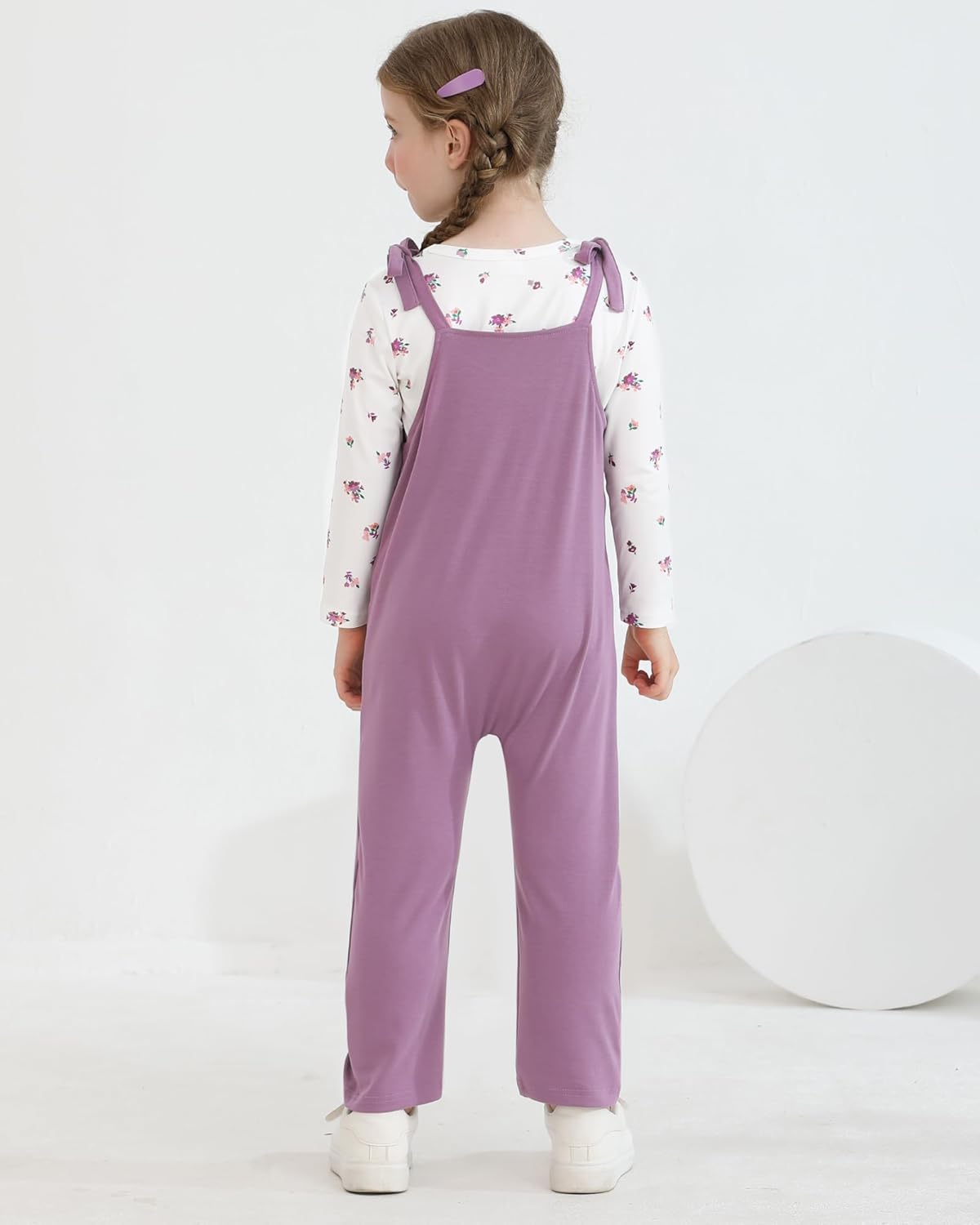 Toddler Girl Clothes Girls Jumpsuit Fall Winter Round Neck Long-Sleeved Top and Overalls with Pockets 2-8 Years