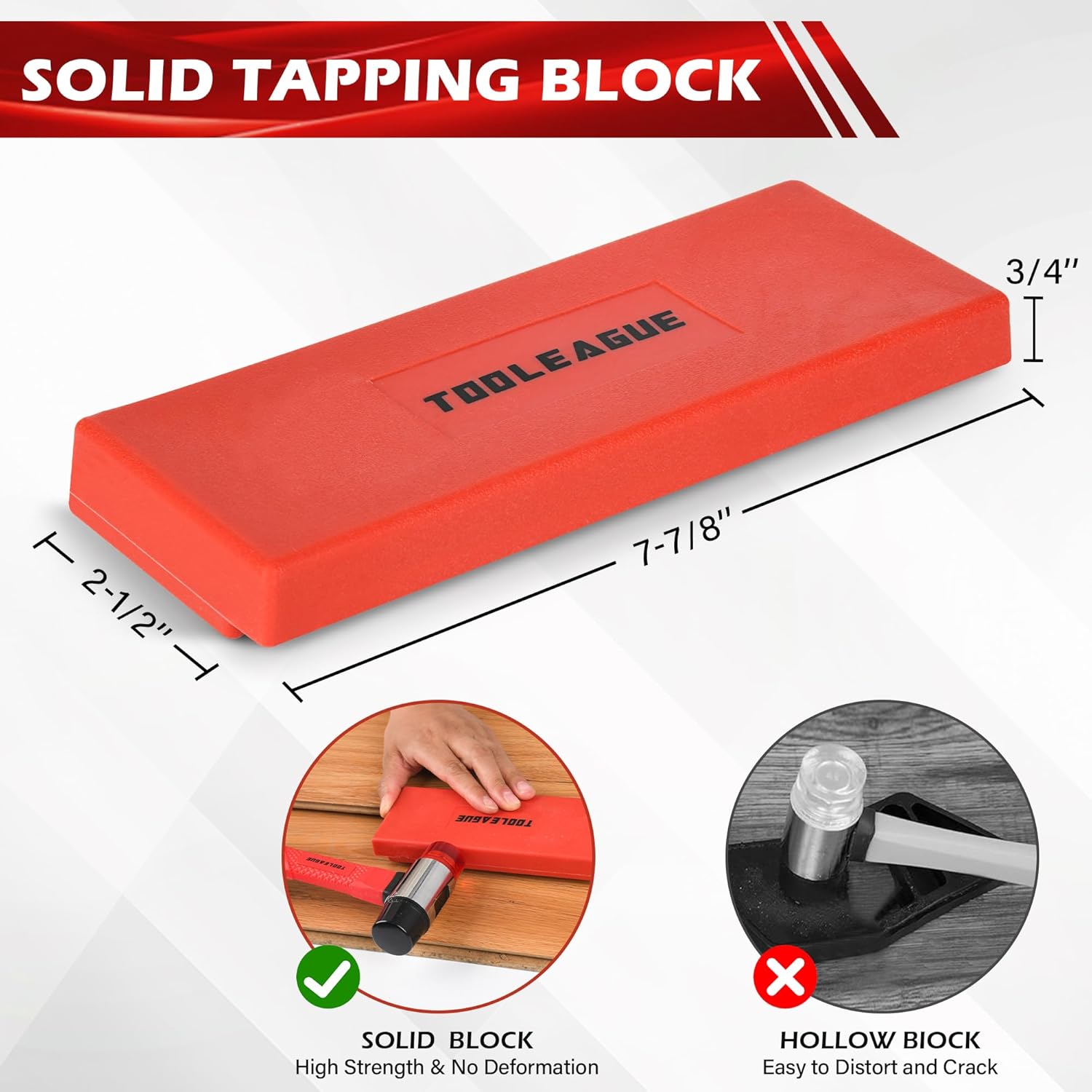 【Solid Tapping Block】: The tapping block is made of polypropylene and has a solid design that is strong and durable enough to be struck repeatedly over a long period of time without being easily damaged.The approximate size of the block is 7-7/8 x 2-1/2 x 3/4 inch.