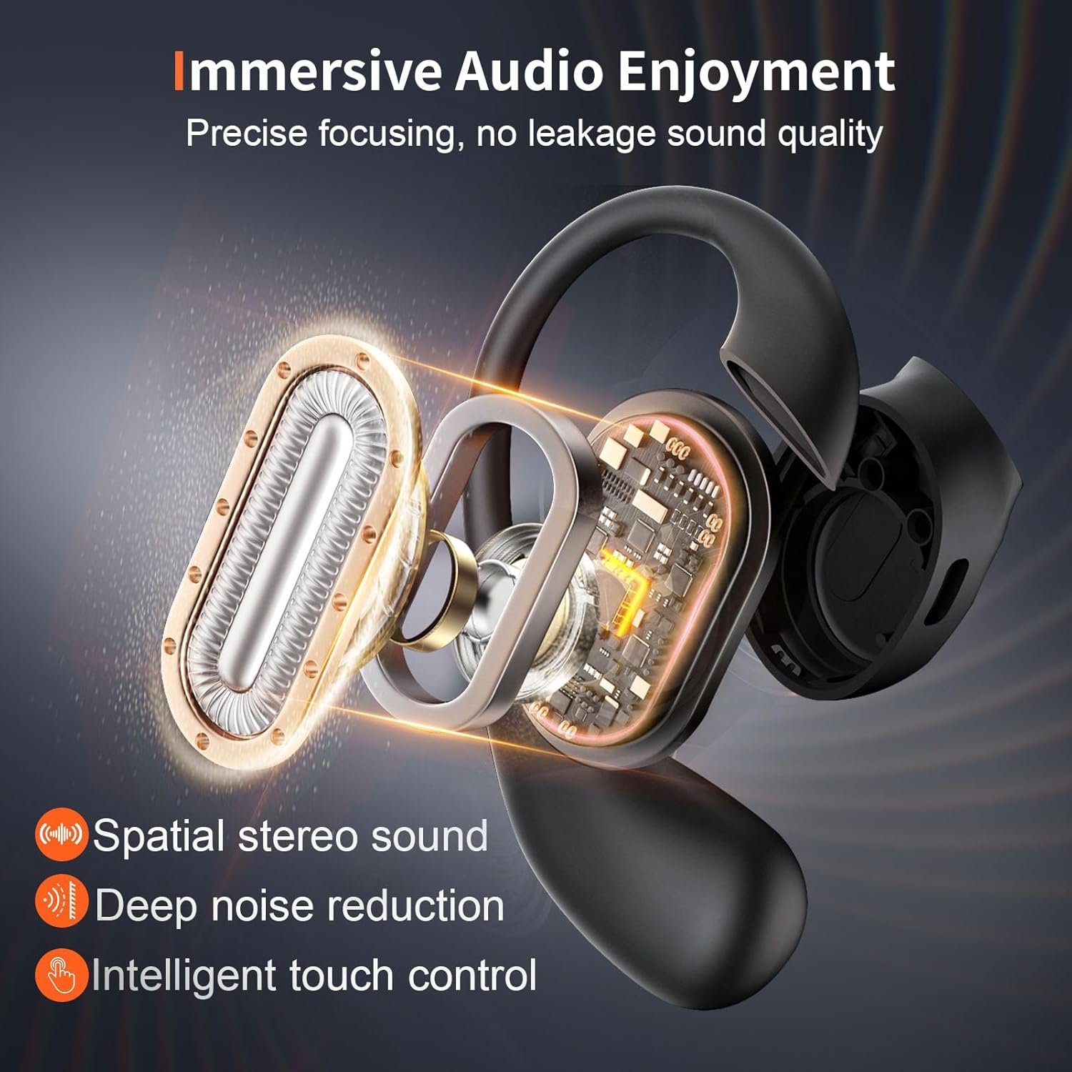 4g Comfortable Design – Ergonomic open-ear buds, only 4g weight, zero ear canal pressure, reduces 90% irritation. All-day comfort, glasses-friendly.