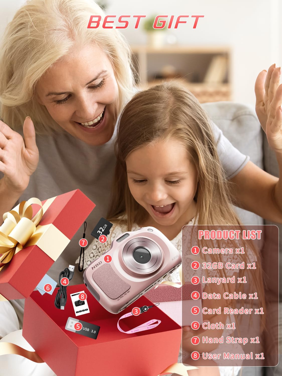 【64MP & 4K DIGITAL CAMERA】64MP resolution ultra high definition pixels are perfect for recording daily life and capturing every detail. 4K video recording allows you to clearly preserve the wonderful moments with your family and friends.