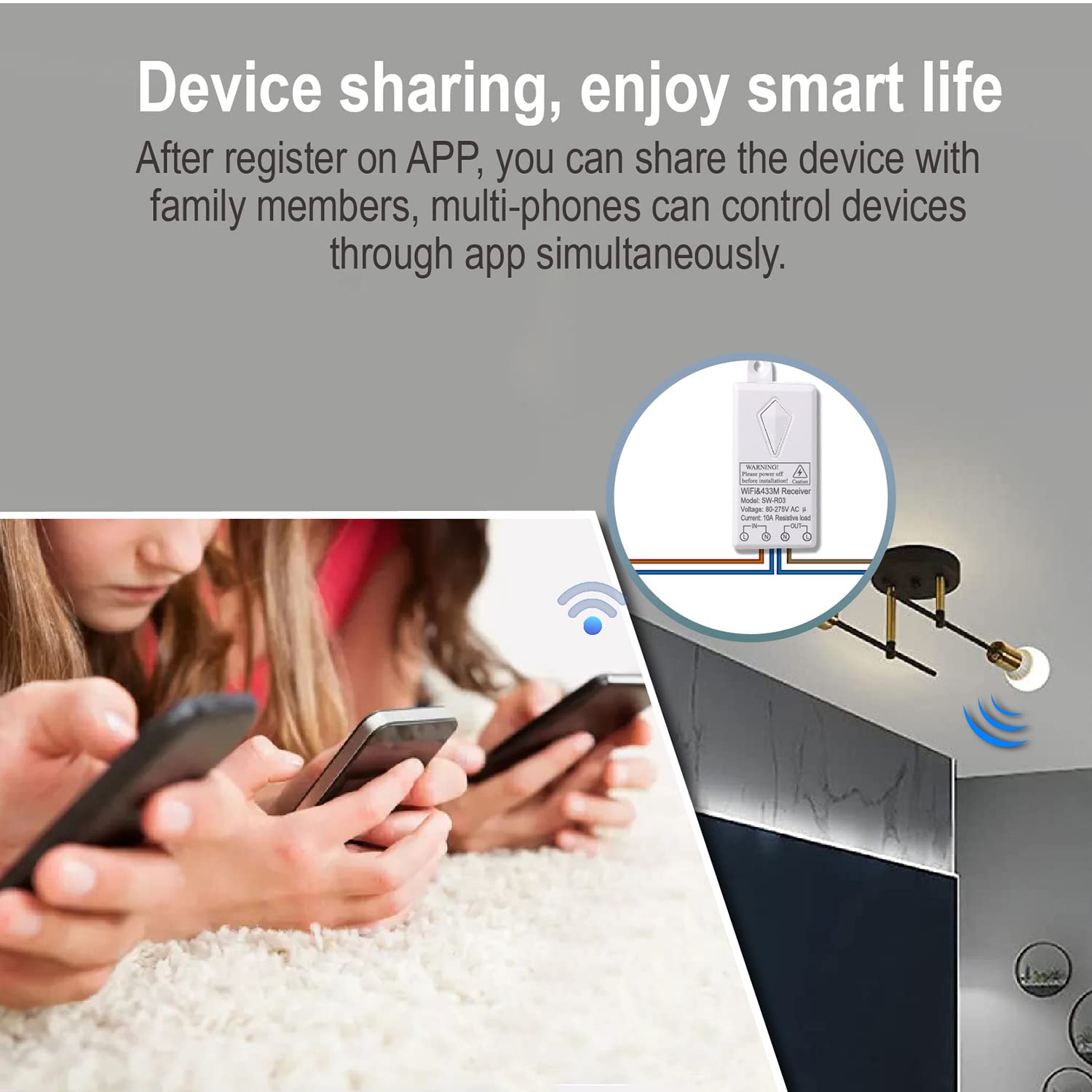 Tuya Smart WiFi Wireless Lights Switch Kit, Waterproof On/Off Switch Compatible with Alexa & Google Assistant No Wiring Voice Control Timer Function App Remote Control Your Fixtures from Anywhere