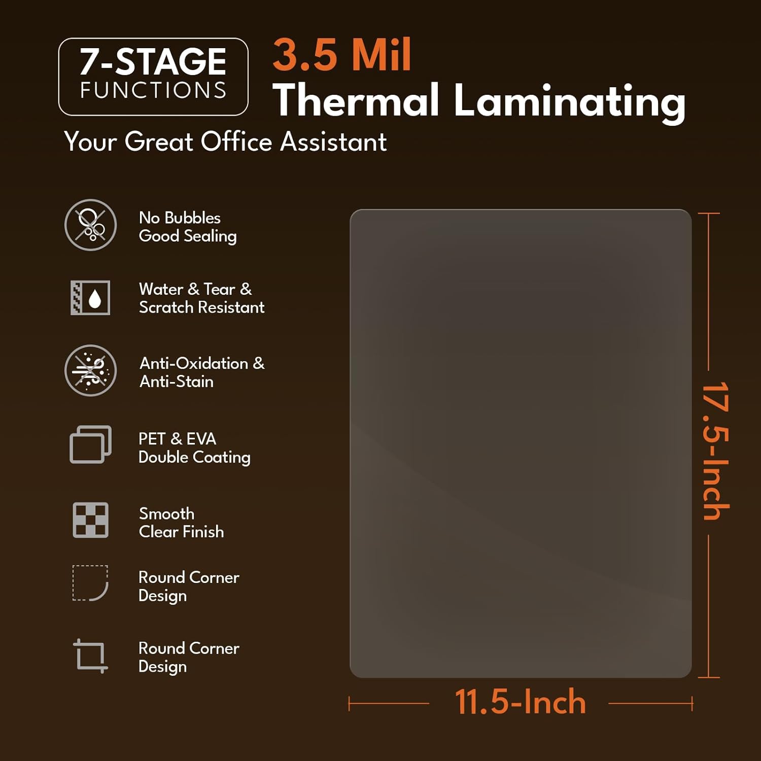 Uinkit 3.5Mil 100Pack Clear Laminating Sheets, 11.5 x 17.5-Inch Laminate Pouches, Fits 11 x 17-Inch Laminator Paper, Protector for Photo Sticker Papers, Use in Office School Supplies, Rounded Corner