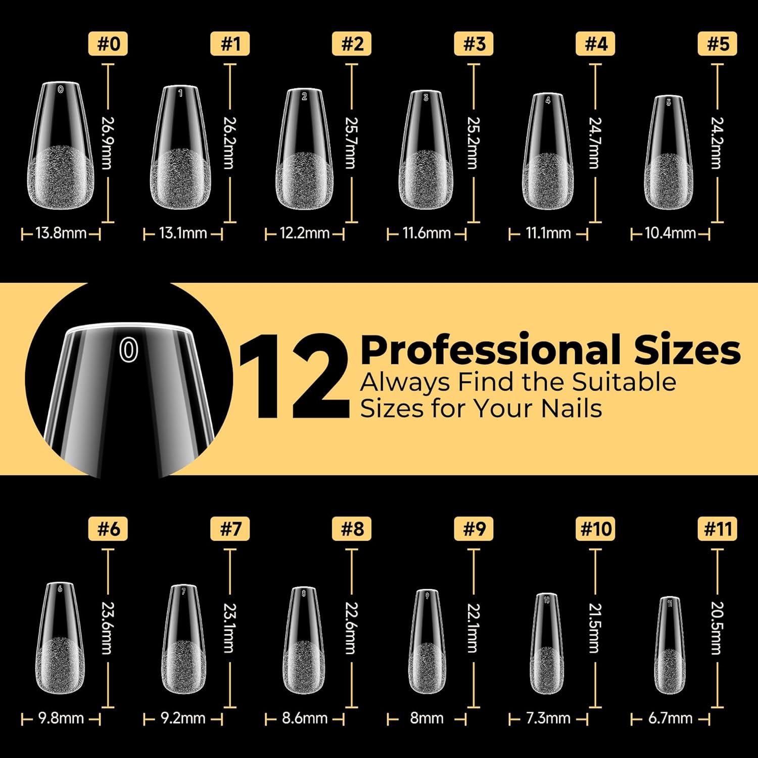 【Great Fit Effect】 The medium coffin gel nails feature “ Thin back edge, thick front edge”. The thinner back edge can make the full cover nail tips fit your nails better. Our tips have smooth edges with a gentler curve, making them fit comfortably against the nail bed without feeling tight. They maintain color well, don’t separate or peel, and make the nails look more natural