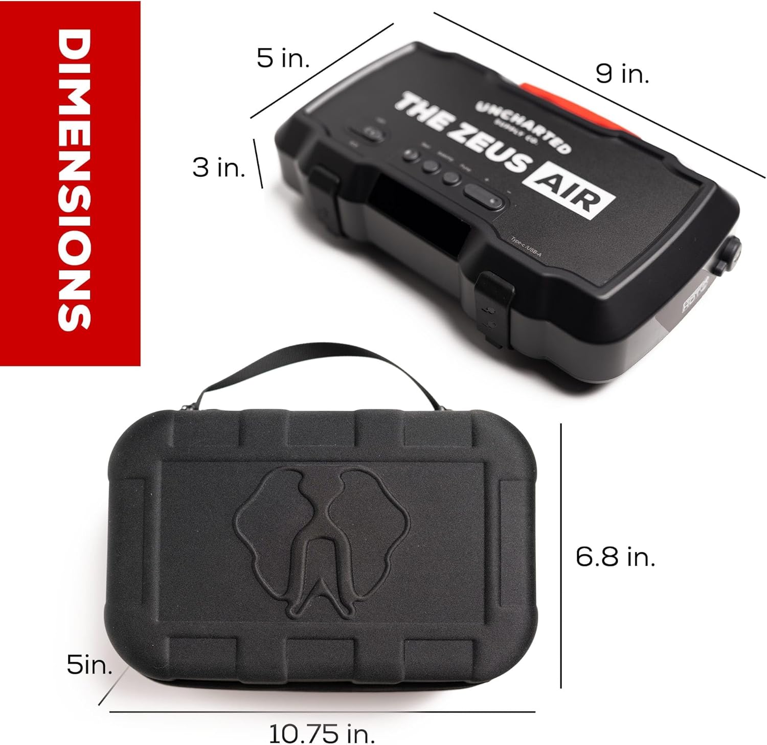 Be the first to review “Uncharted Supply Co. Zeus Air, Portable 2000A Jump Starter, 150 PSI Tire Inflator & Compressor, 15,000mAh Power Bank with USB-C Fast Charging & LED Flashlight”